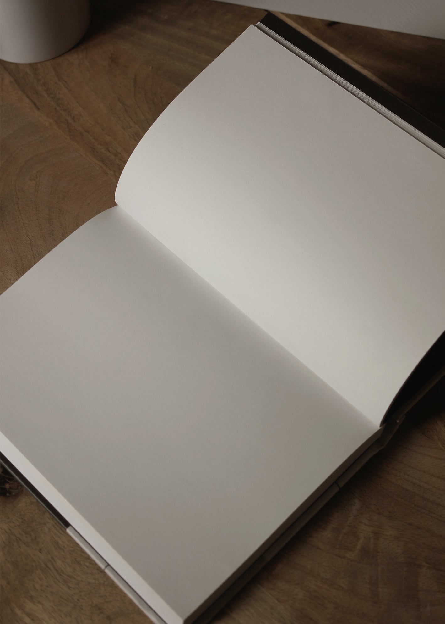 Cuaderno de tamaño 15x21 cm de tapa dura con 160 páginas blancas y lisas. Incluye papel reciclado y de gramaje (80 g/m²).