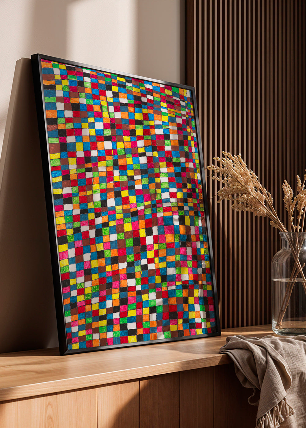 Un póster de la colección cuadros geométricos, del artista Fundación Setba, con matices de tonos multicolor, y orientada en vertical. Los cuadros geométricos son una buena opción para decorar espacios modernos y vanguardistas. Un hogar se viste por las paredes.