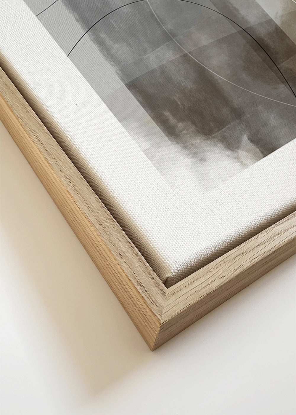 Si seleccionas la opción passepartout, añadiremos el recuadro de cartón blanco al marco, y reduciremos el diseño de la obra. Por ejemplo, si seleccionas una lámina de tamaño 50x70, con marco de color roble y passepartout, reduciremos el diseño de la lámina al tamaño anterior (40x50cm). De esta manera, se adaptará perfectamente a la ventana interior del passepartout.