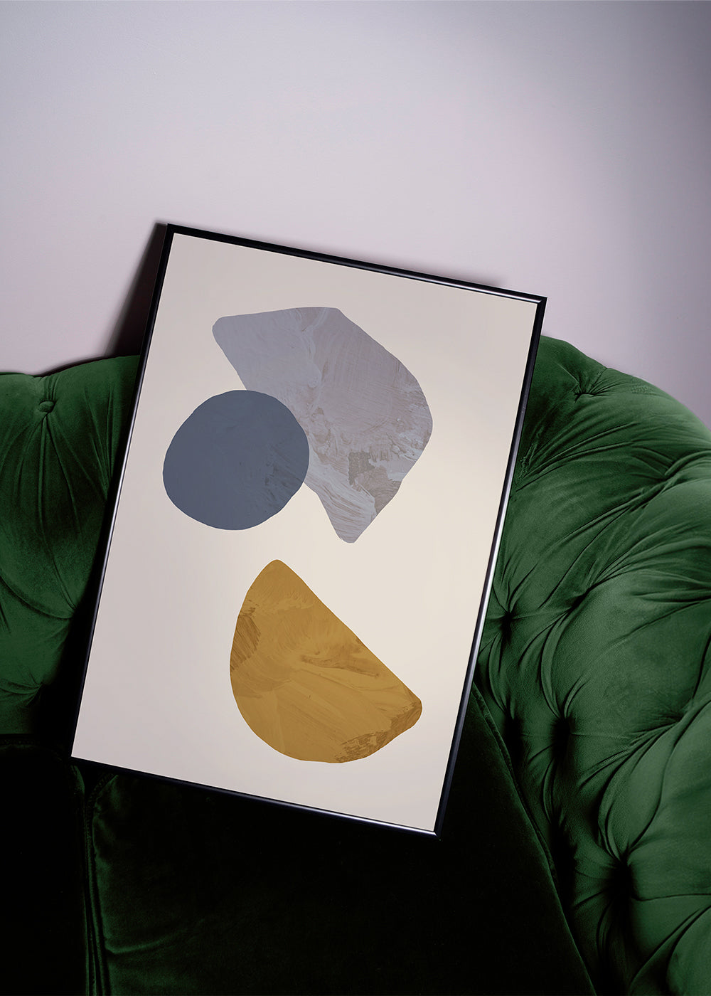 Bonito diseño de nuestro conjunto de cuadros geométricos, en tonos azules, y de formato vertical. Las formas geométricas y abstractas ayudan a crear un ambiente desenfadado y creativo. Deja tus paredes a cuadros.