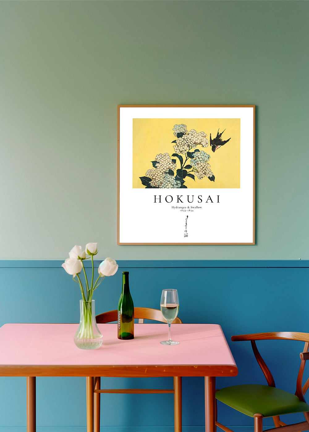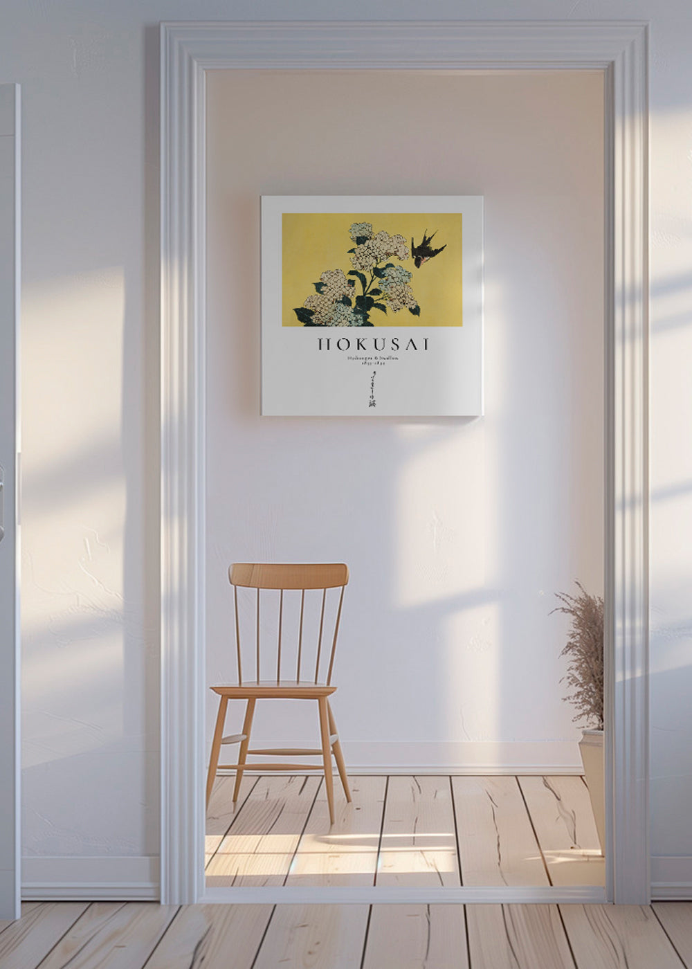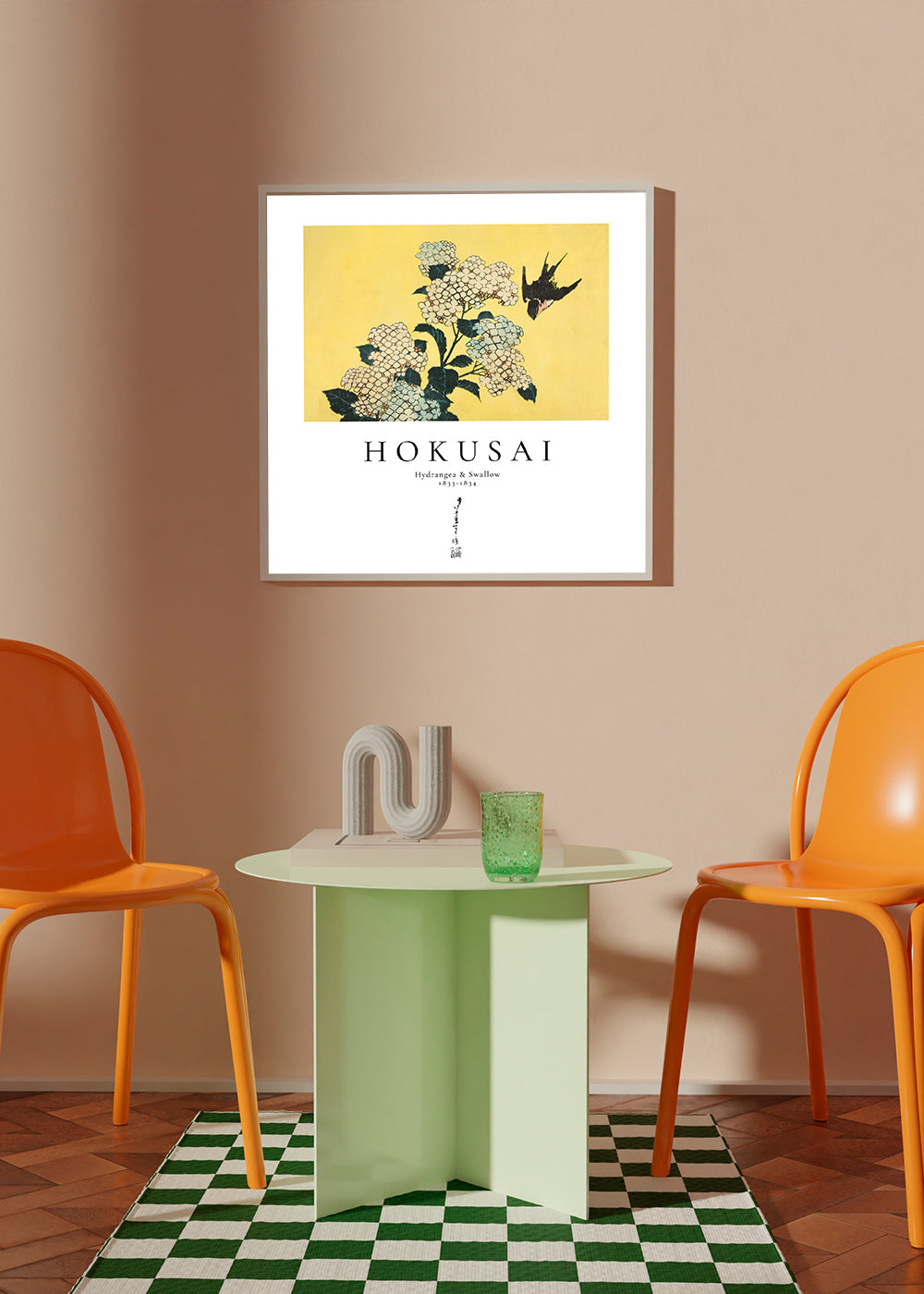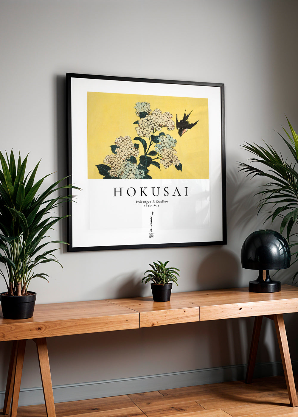 Cuadro de estilo nórdico Hydrangea and Swallow by Katsushika Hokusai - Square