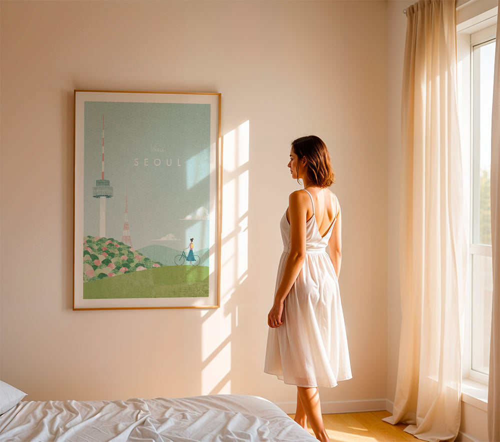 - Enmarcado gratuito: al escoger un marco, recibirás tus cuadros enmarcados y listos para colgar.