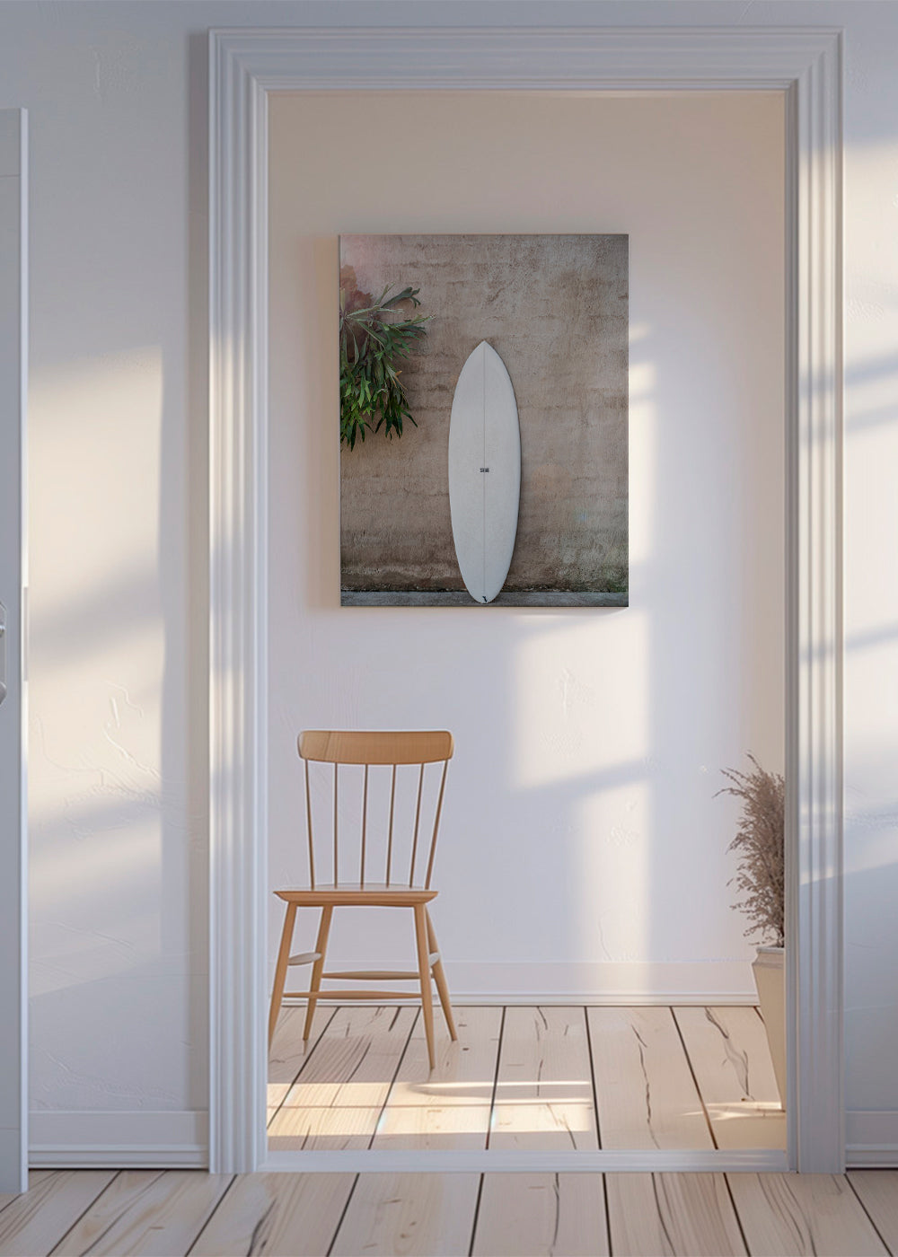 Un diseño con inspiración en nuestra colección de cuadros de surf, de 1x, con colores grises, y para colocar en posición vertical. Calma, tranquilidad, paz… Únete al movimiento de la decoración mindfulness con este diseño. Selecciona el tamaño que mejor encaje en tu decoración.