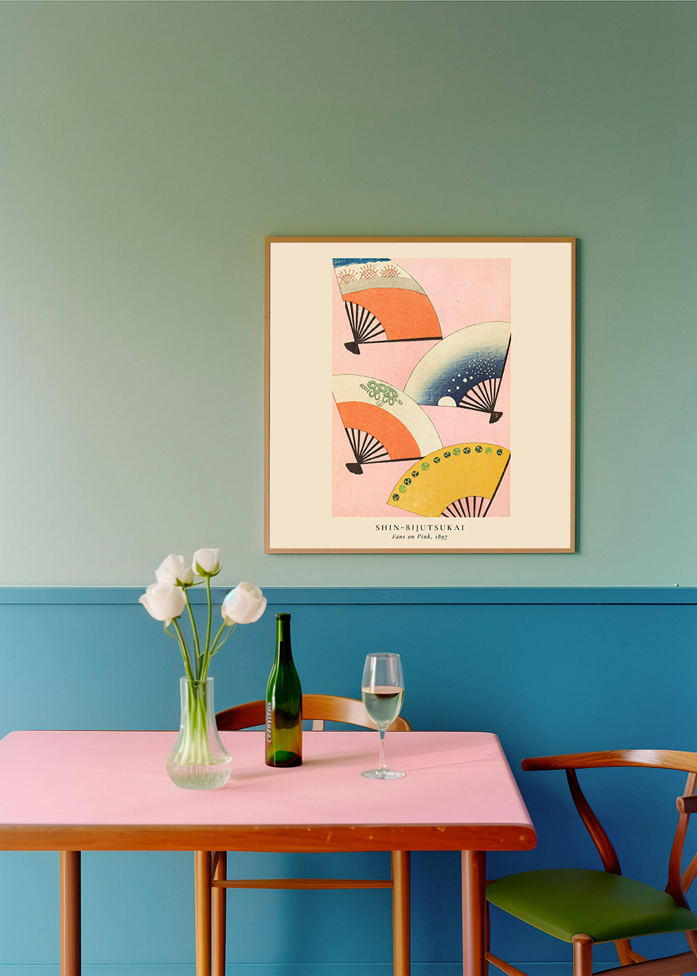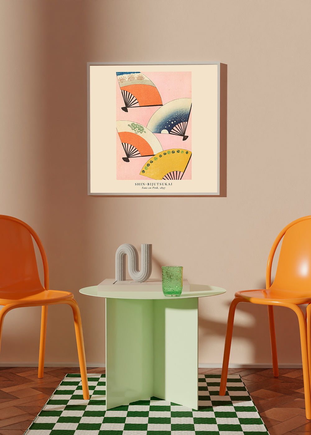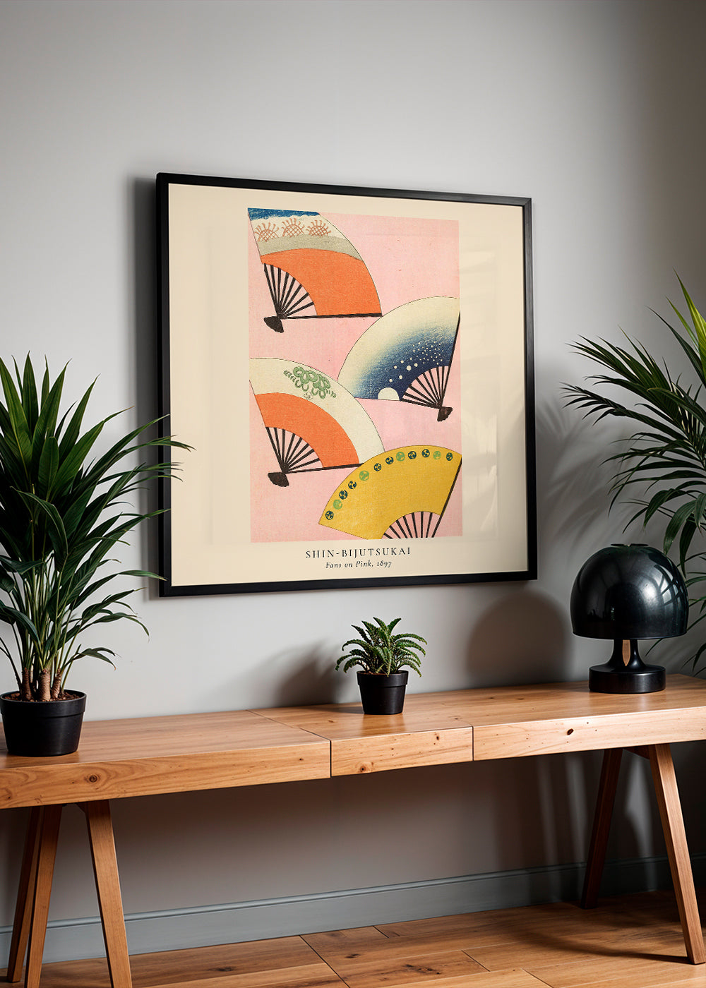 Cuadro de estilo nórdico Shin-Bijutsukai - Fans on pink - Square