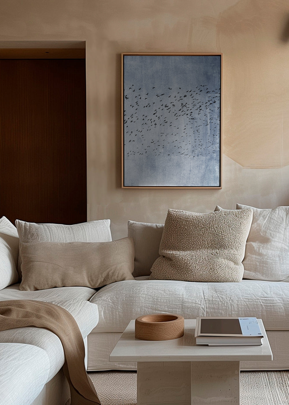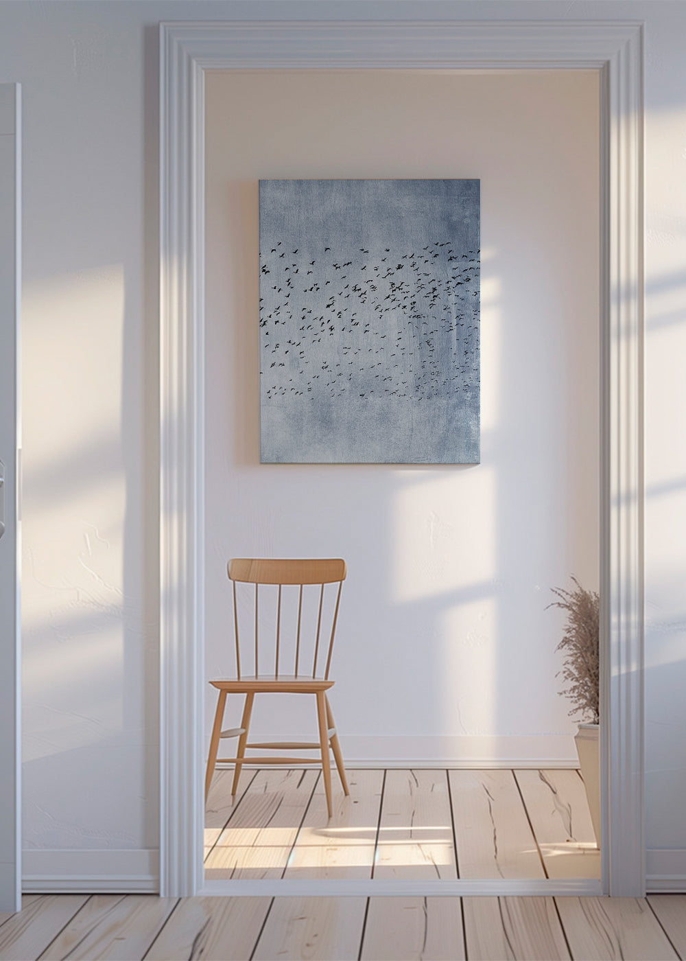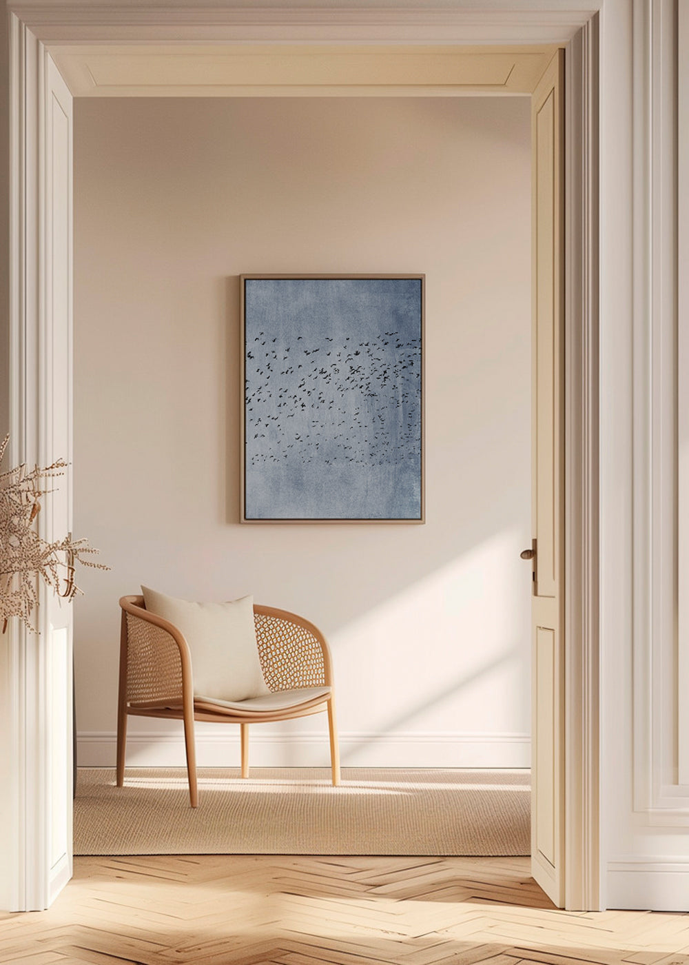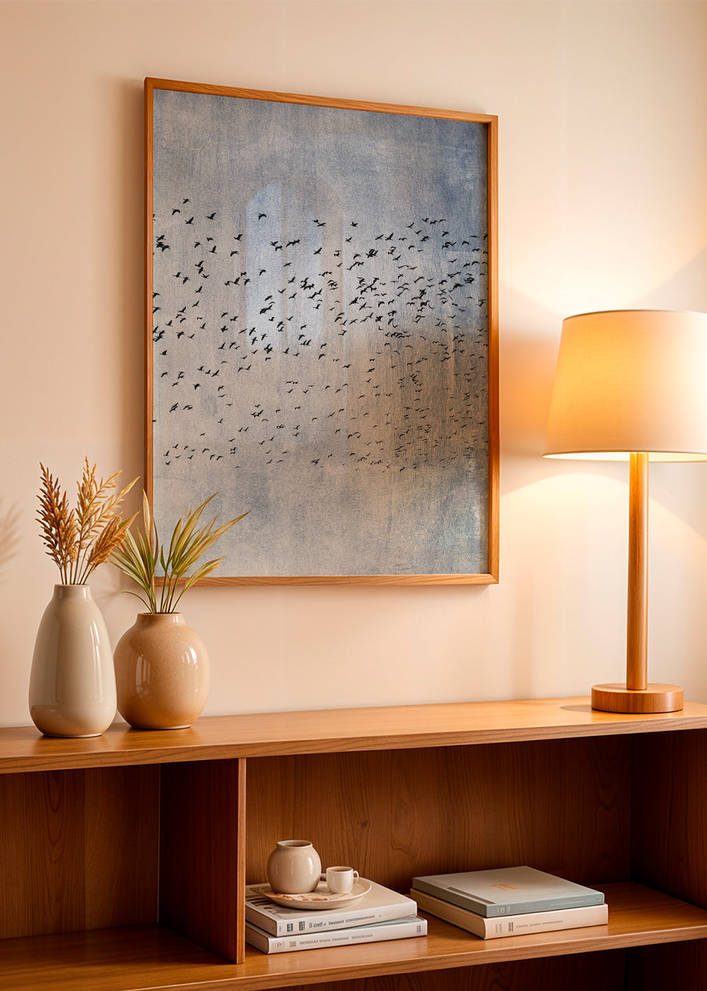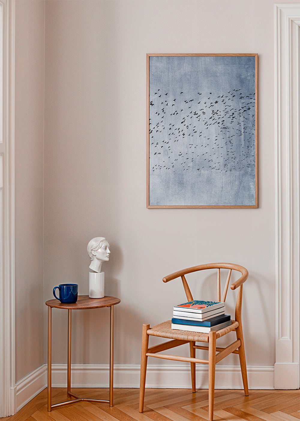 Un póster del estilo de nuestros cuadros de pájaros, original de Kubistika, con matices de colores azules, y de posición vertical. Las láminas de animales nos permiten mostrar nuestro lado más salvaje en la decoración de las paredes. Elegancia inspirada por el arte.