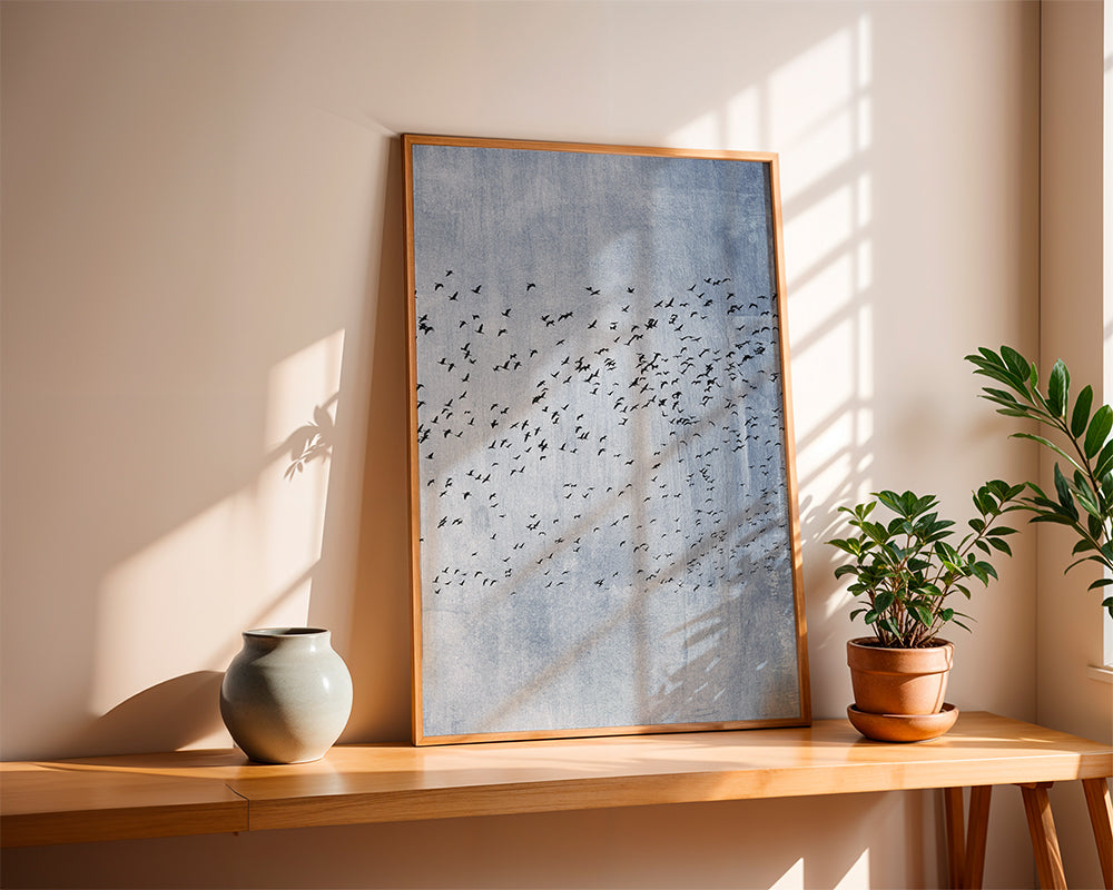 - Enmarcado gratuito: al escoger un marco, recibirás tus cuadros enmarcados y listos para colgar.