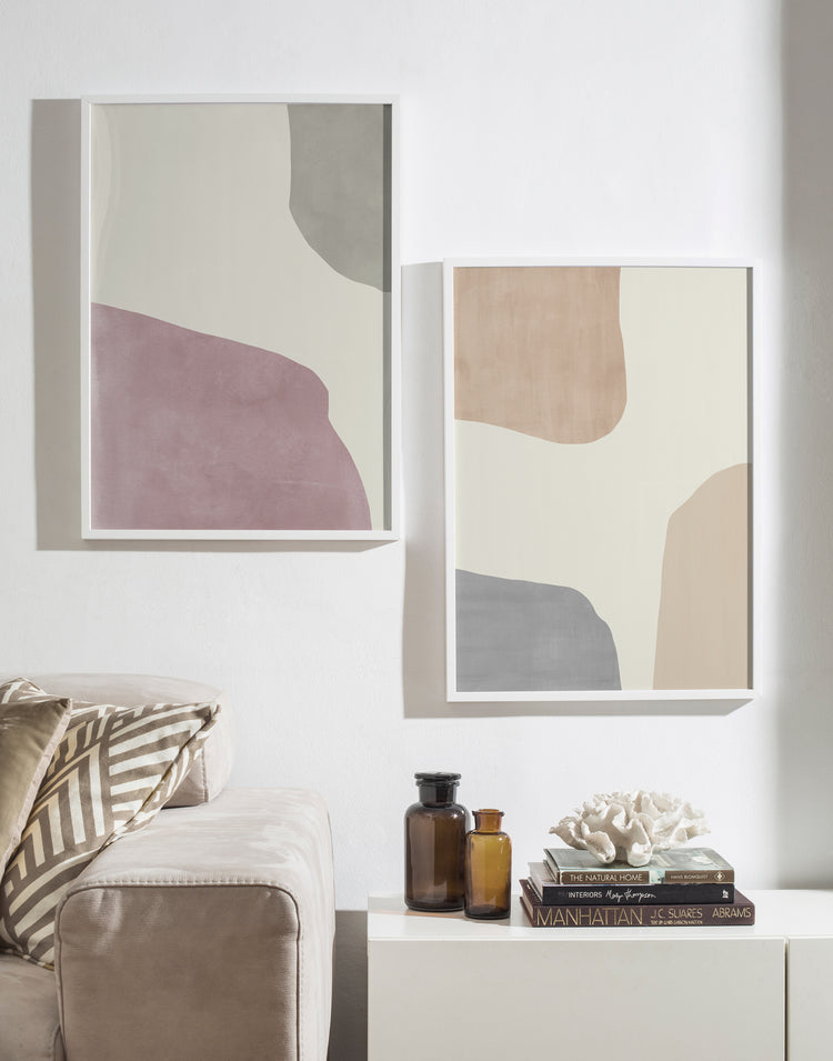Una lámina de nuestro repertorio de cuadros geométricos, original de Nouveau Prints, con tonalidades de colores beige, y ideal para poner en posición vertical. Los cuadros geométricos son una buena opción para decorar espacios modernos y vanguardistas. Una pieza que seguro dará un plus a la estancia.