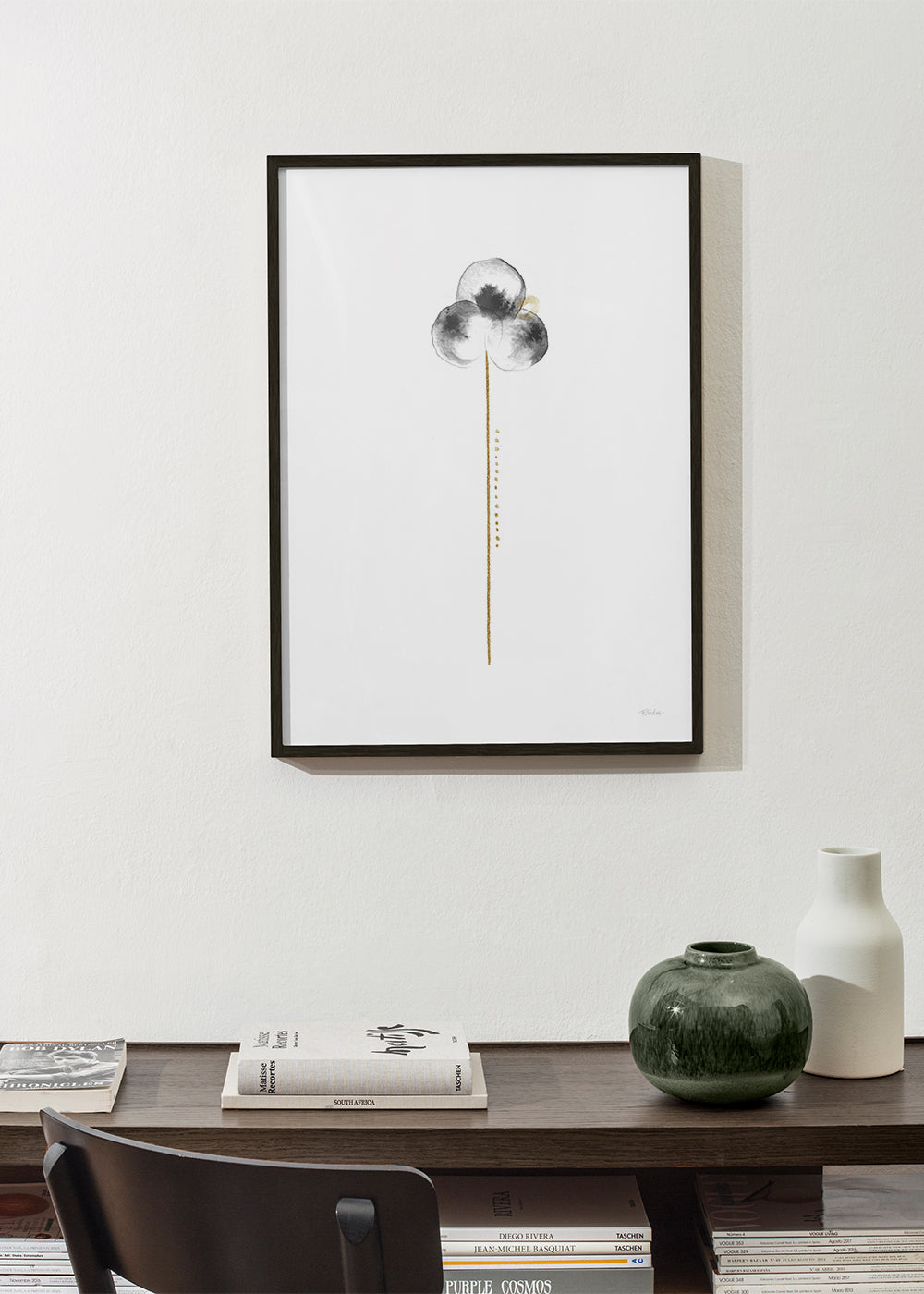 Bonito póster de nuestra selección de cuadros de flores y plantas, perteneciente a la colección de Fabiana Silveira, en tonos negros, y con orientación vertical. Una obra ideal para espacios que derrochan arte y creatividad. Nuestras ilustraciones son ideales para decorar espacios vacíos o aburridos. Dales vida a las paredes de tu casa.
