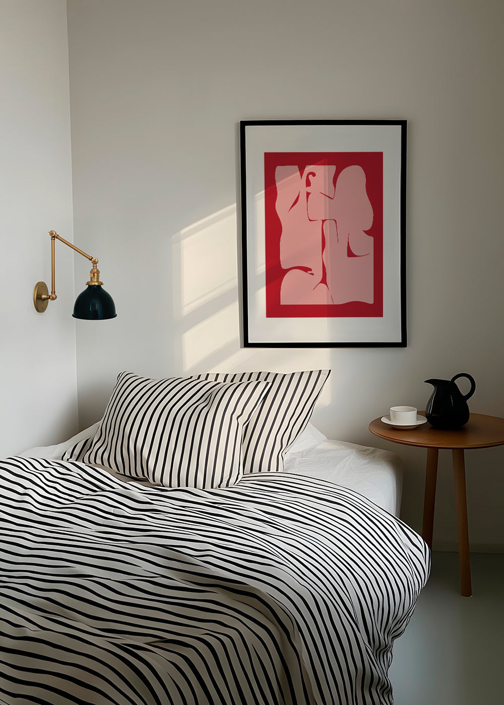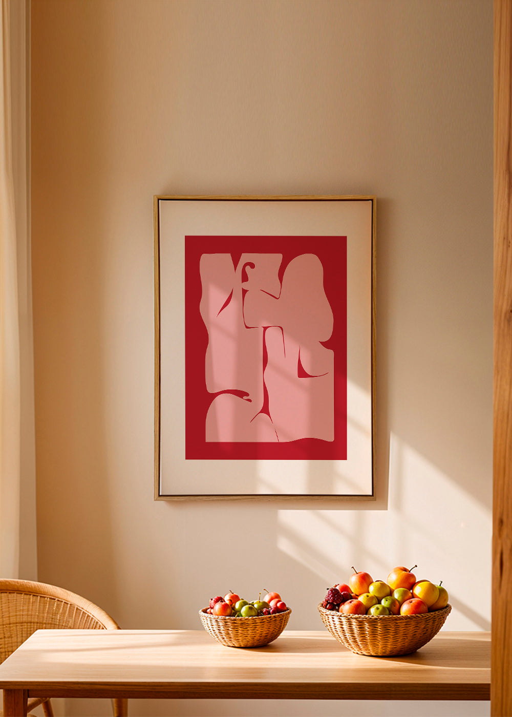 Esta pieza de nuestra selección de cuadros geométricos, original de Nordic Creators, en tonos rojos, y de posición vertical. El arte geométrico es un estilo elegante para decorar las paredes del hogar. Crea una decoración de pared ideal. Esta obra incluye un margen blanco que enmarca el diseño para potenciar su estilo.