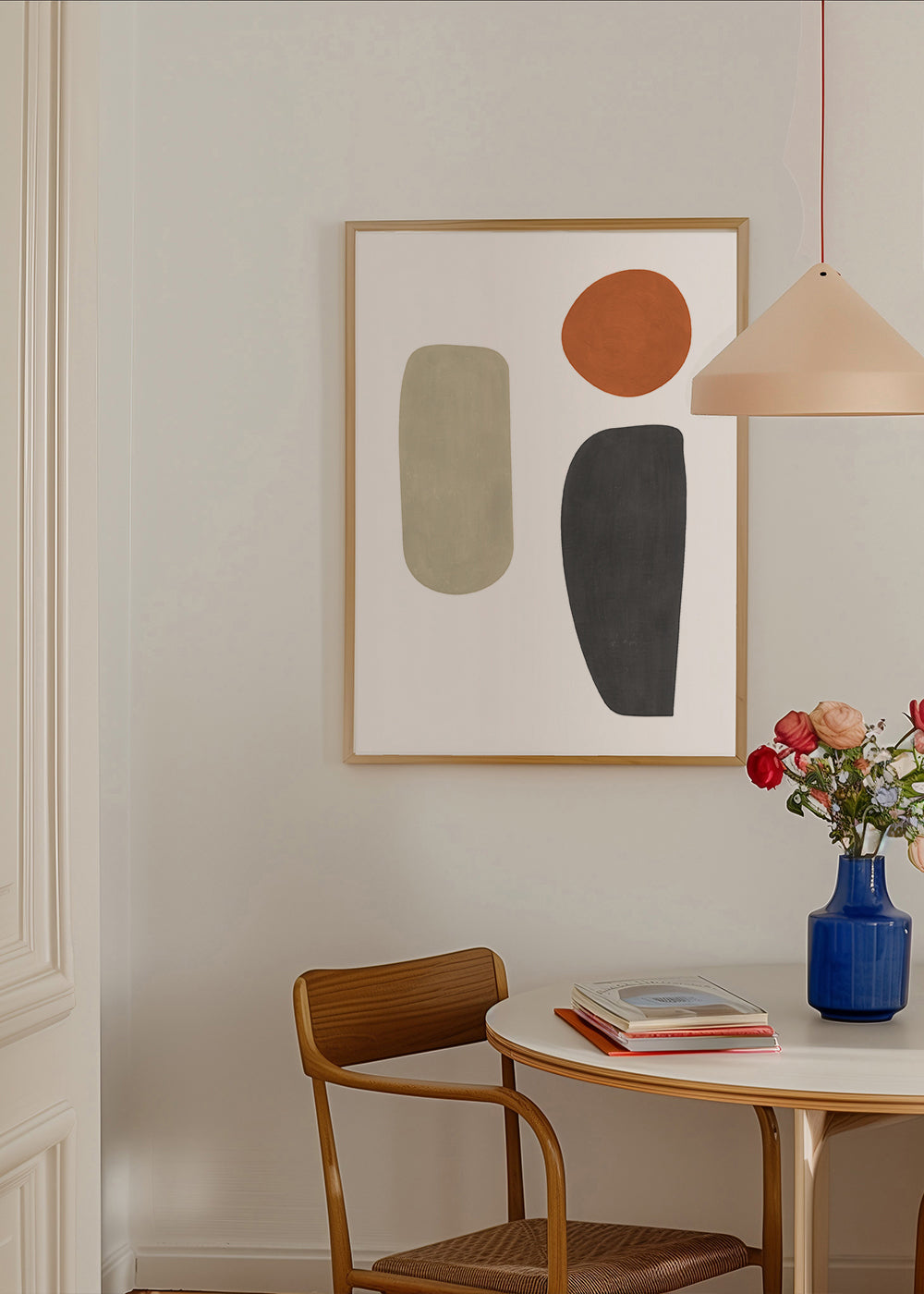 Una lámina de nuestro repertorio de cuadros geométricos, que nos presenta Nouveau Prints, con tonos rojos, y con orientación vertical. Las formas geométricas y abstractas ayudan a crear un ambiente desenfadado y creativo. Puro arte y diseño.