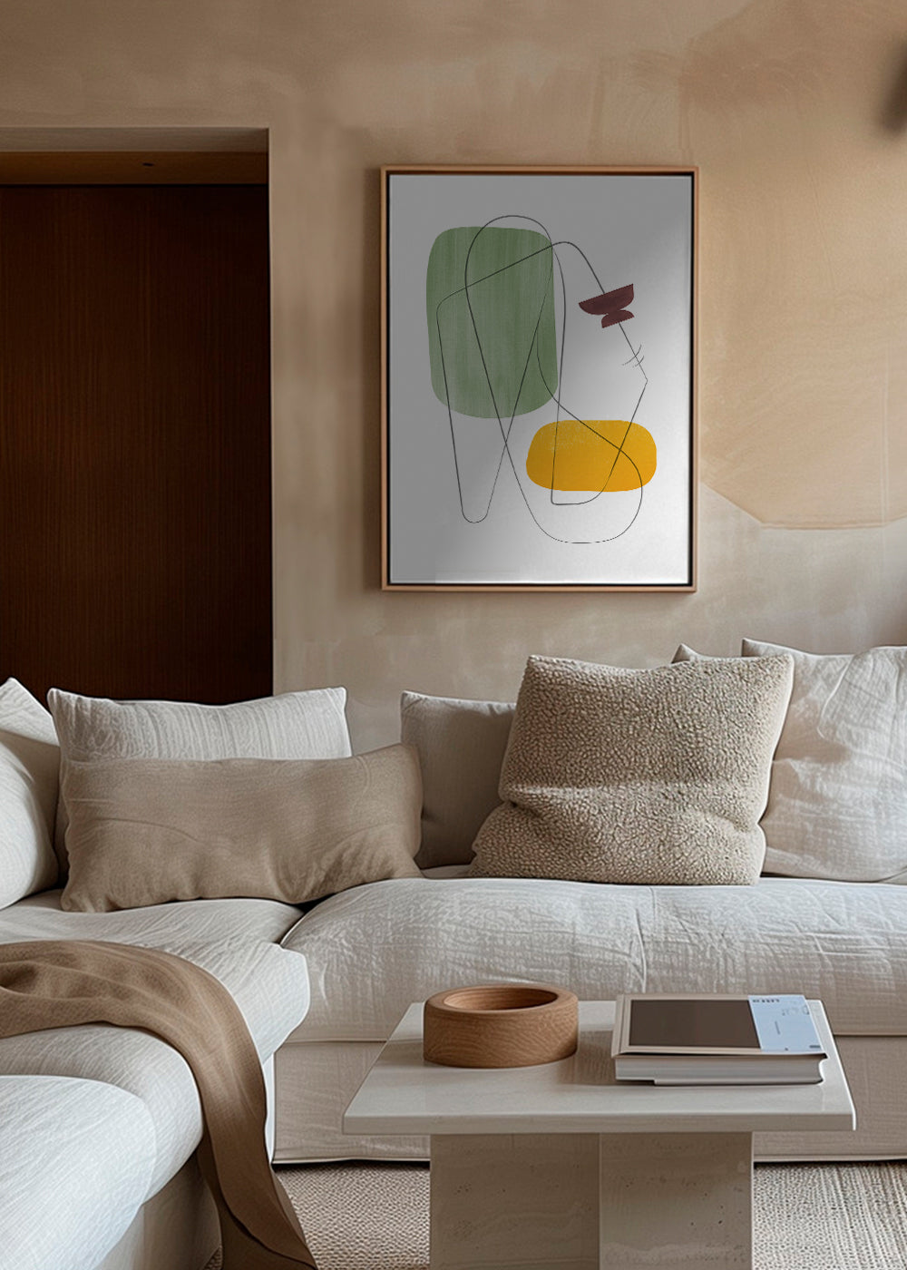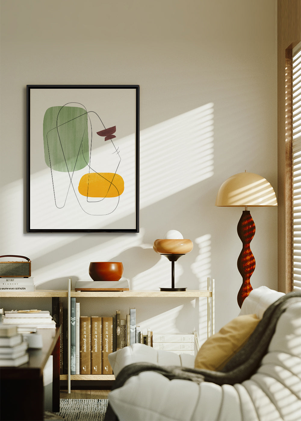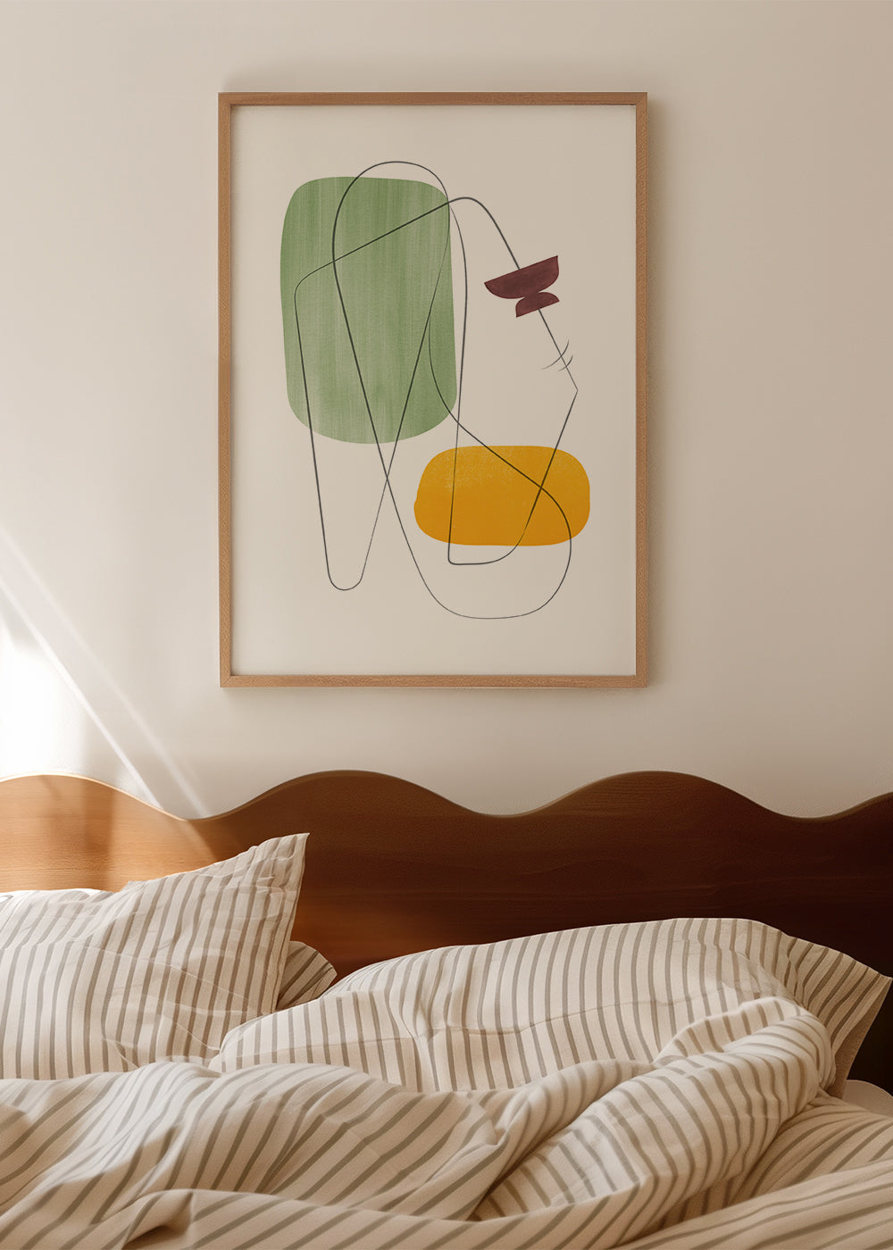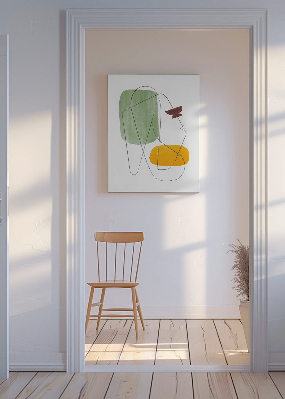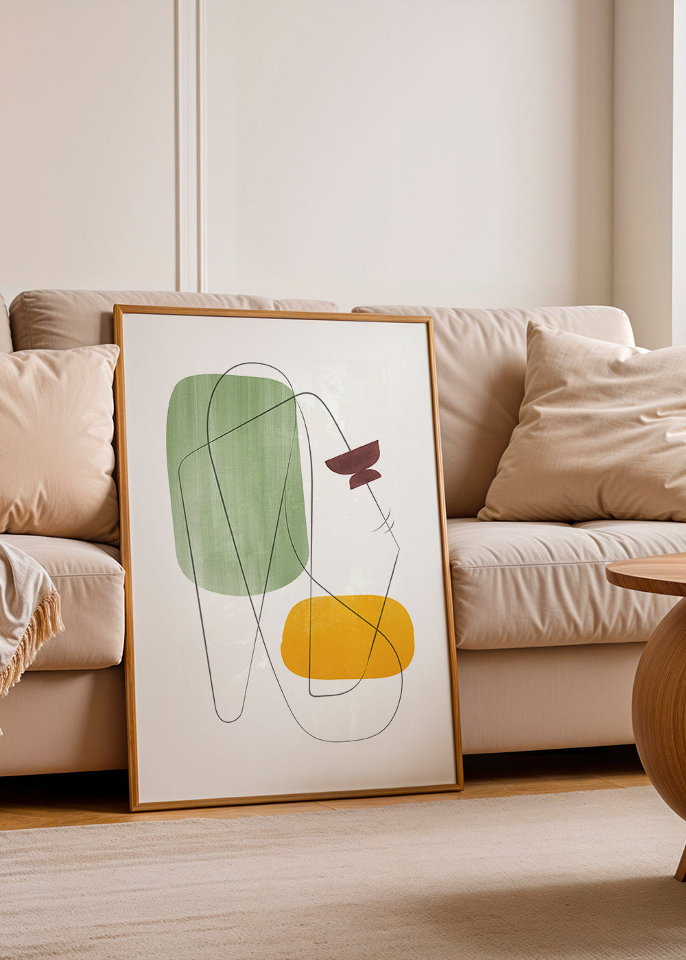 Un cuadro de la colección cuadros geométricos, original de Nouveau Prints, con matices de colores verdes, y orientada en vertical. El arte geométrico es un estilo elegante para decorar las paredes del hogar. Construye rinconcitos llenos de arte.