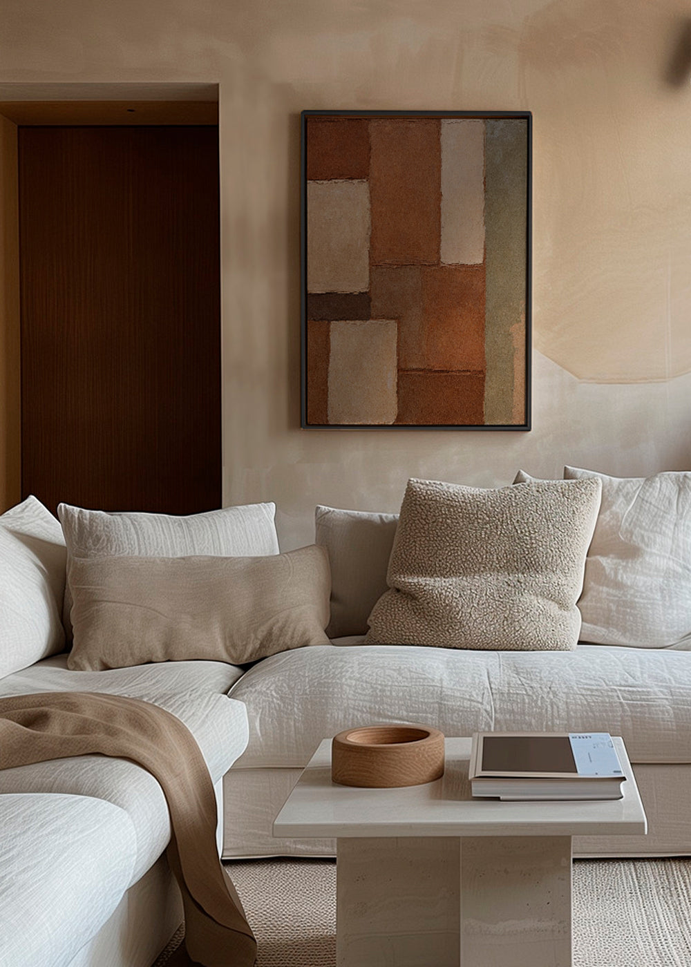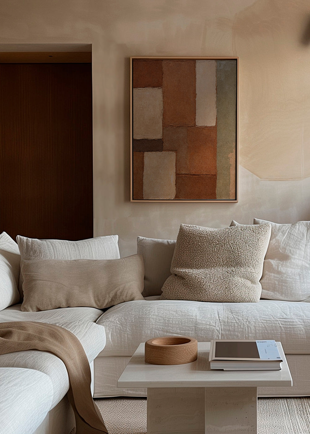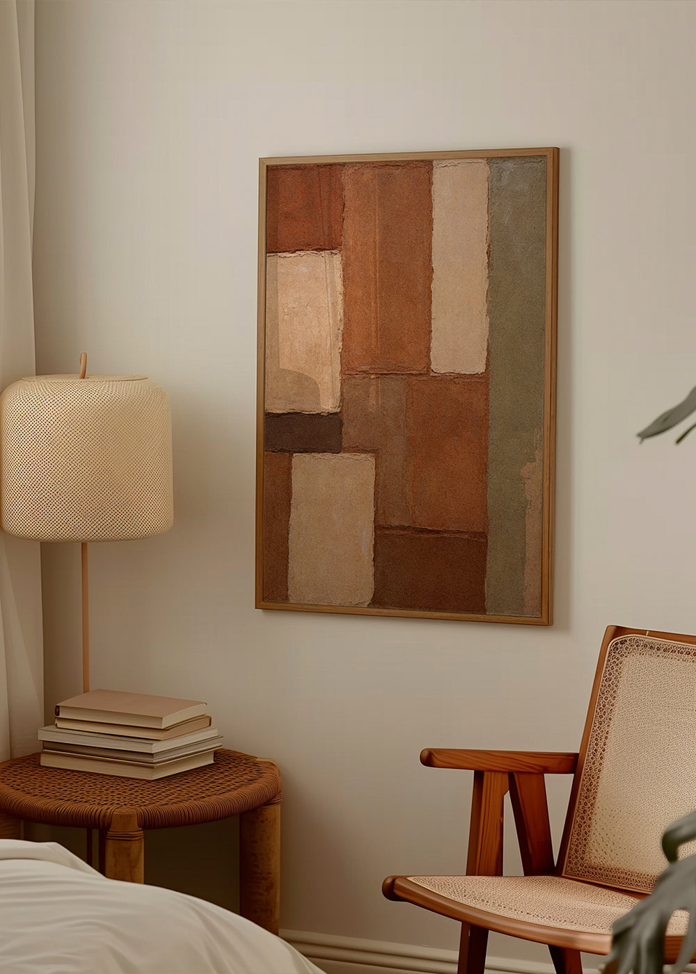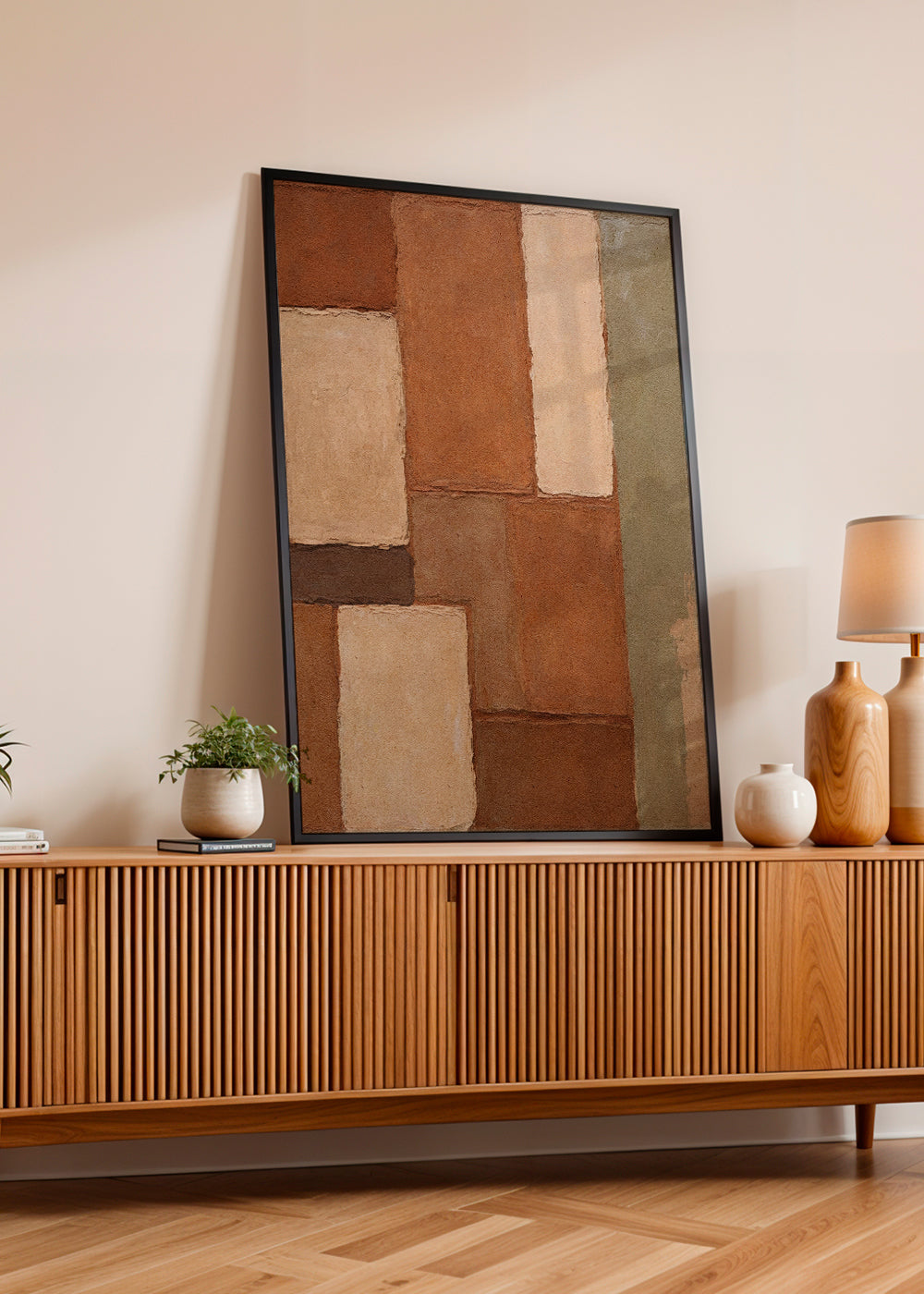 Una obra de nuestra colección de cuadros geométricos, de la mano de 1x, con colores marrones, y con orientación vertical. Las formas geométricas y abstractas ayudan a crear un ambiente desenfadado y creativo. Elegancia inspirada por el arte.