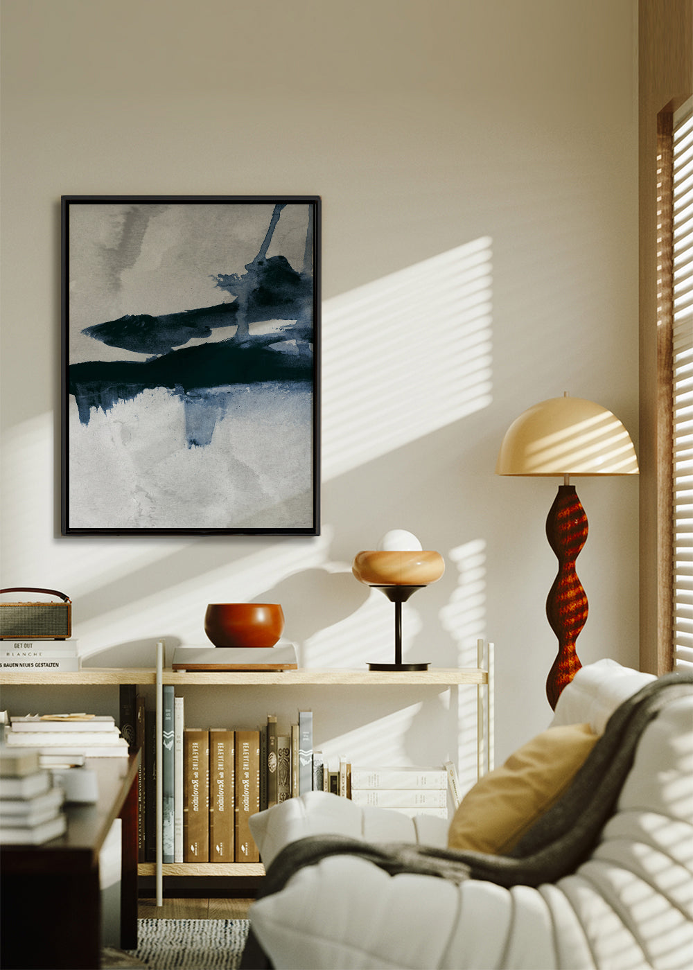 Esta obra de nuestro repertorio de cuadros geométricos, de la mano de 1x, con colores azules, y en formato vertical. Esta obra con formas abstractas es ideal para combinar con cuadros geométricos y arte abstracto. Crea una decoración de pared ideal.