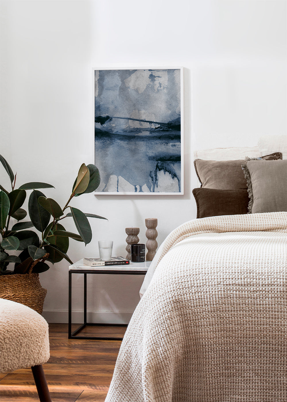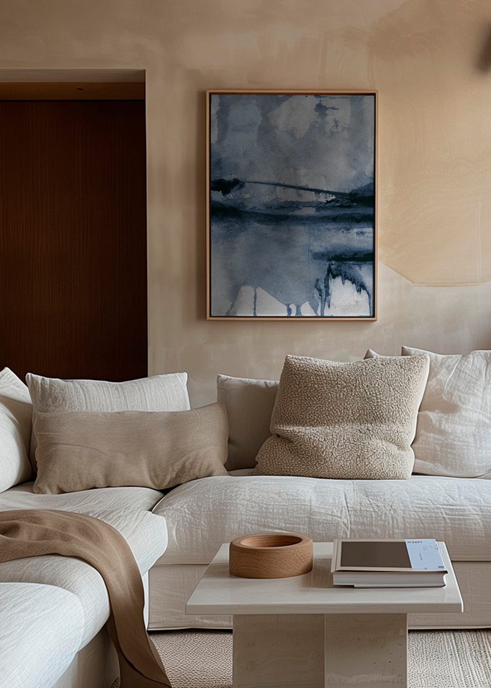 Un diseño de la serie de cuadros geométricos, de 1x, con pigmentos azules, y de posición vertical. Las formas geométricas y abstractas ayudan a crear un ambiente desenfadado y creativo. Deja que tus paredes cuenten historias.