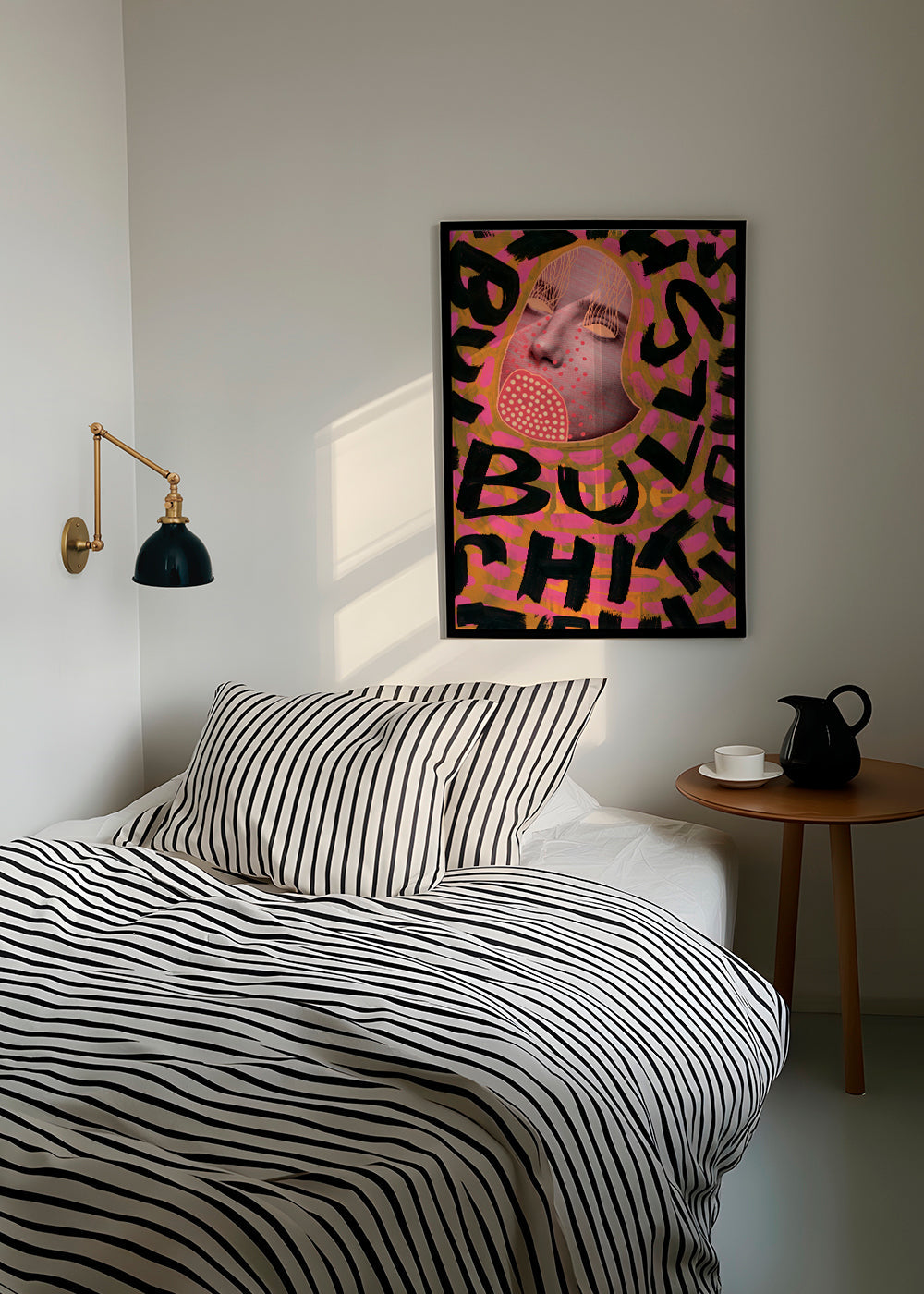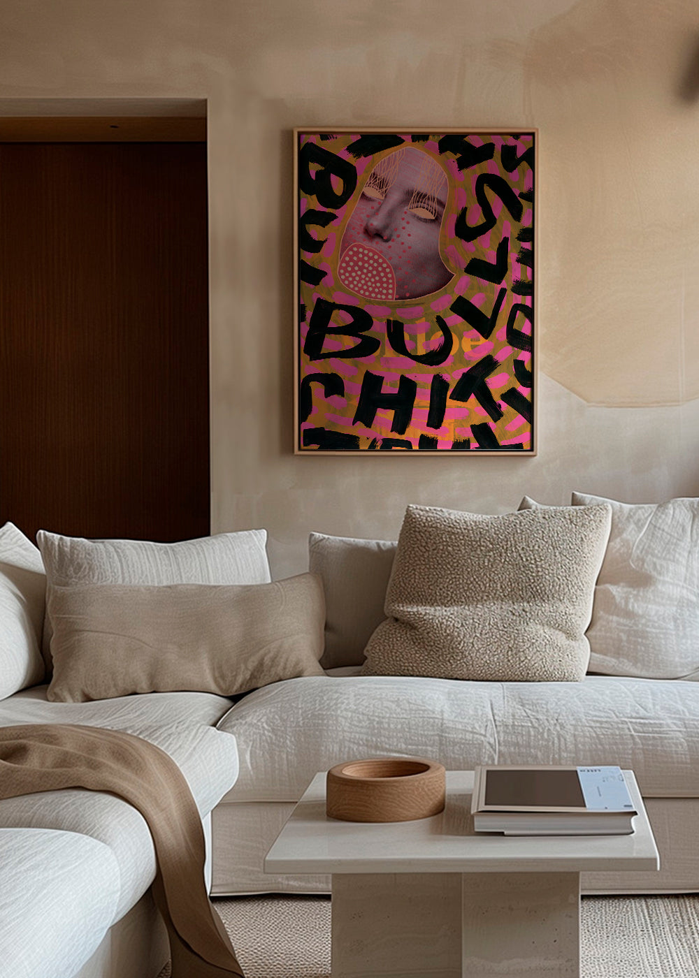 Bonita lámina perteneciente a la categoría de cuadros de street art, concebida por 1x, con tonalidades de colores rosas, y de formato vertical. Los cuadros con ilustraciones son ideales para combinar con arte minimalista y abstracto. Deja que el arte inunde tu hogar.