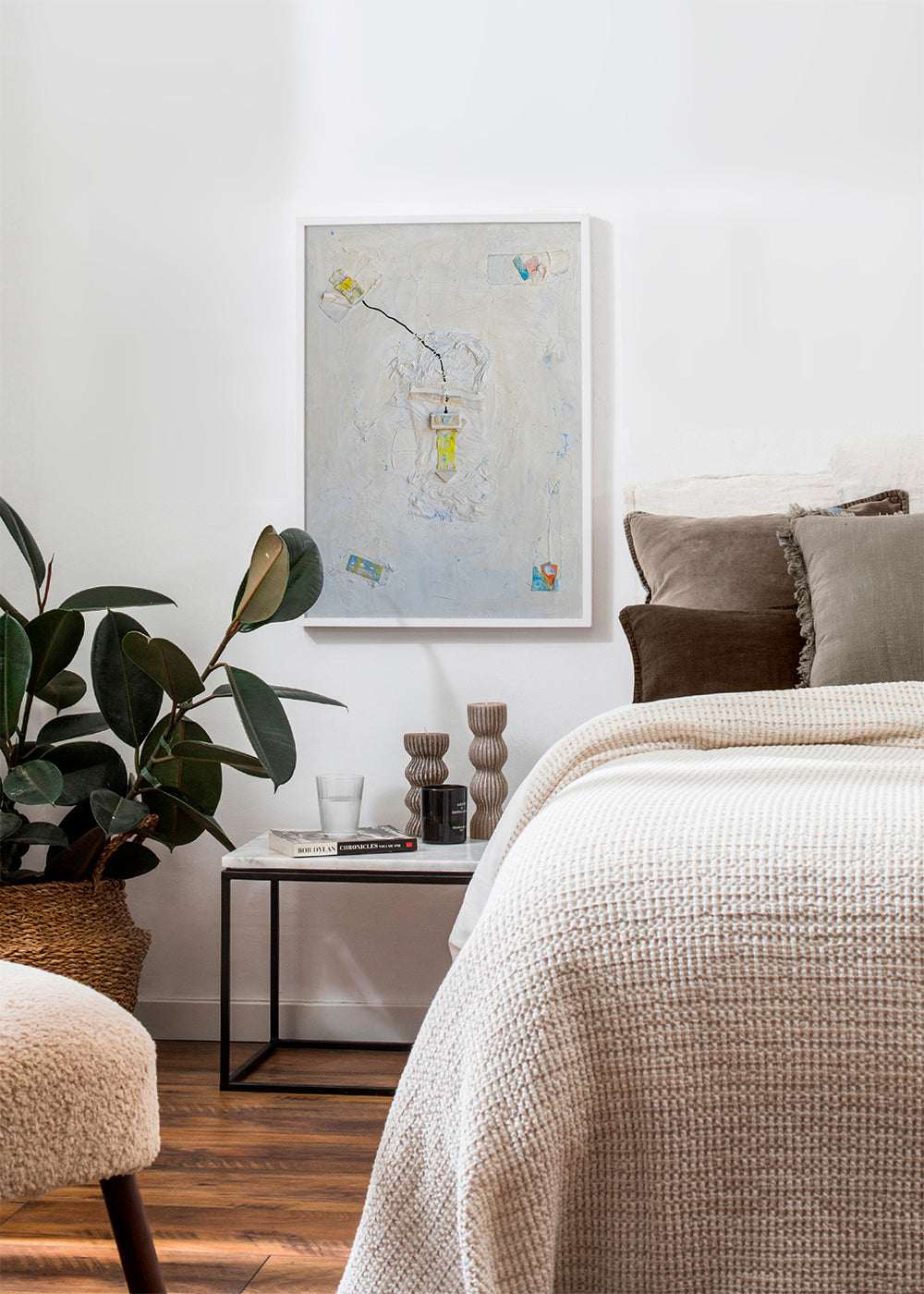 Energía en trazos. Elegante diseño Inspirado por la creatividad de Elena Camacho Art. Mostrando la vitalidad de blancos con un diseño vertical. decorar con cuadros abstractos es una buena opción para aquellos que quieren hogares originales. Transforma tus paredes aburridas