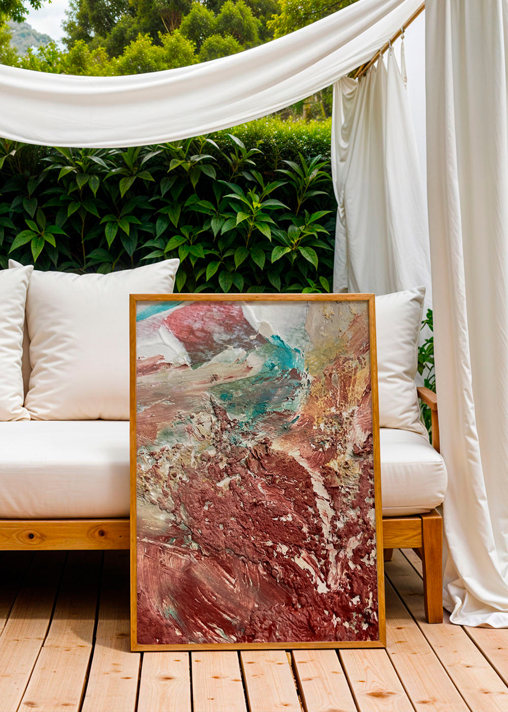 Esta lámina de nuestra selección de cuadros abstractos, concebida por Elena Camacho Art, con tonos rojos, y ideal para poner en posición vertical. Este diseño es ideal para decorar espacios actuales. Combínalo con otros cuadros abstractos para conseguir una decoración vanguardista. Crea un rincón único.