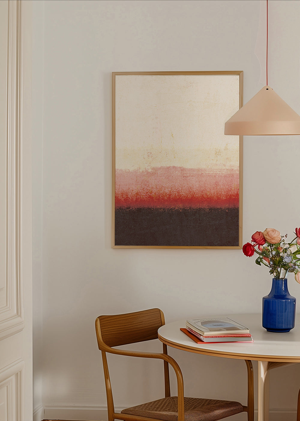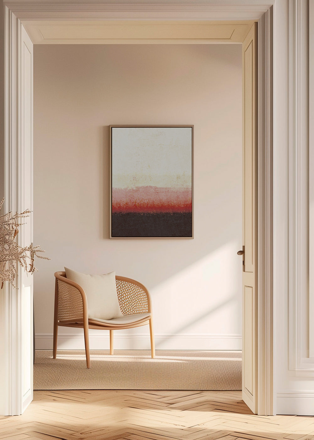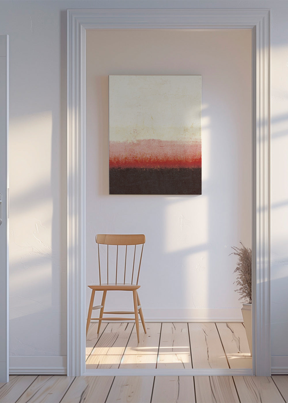 Esta obra del estilo de nuestros cuadros abstractos, concebida por Mike Koubou, en tonos rojos, y orientada en vertical. Este diseño es ideal para decorar espacios actuales. Combínalo con otros cuadros abstractos para conseguir una decoración vanguardista. Crea rincones especiales.