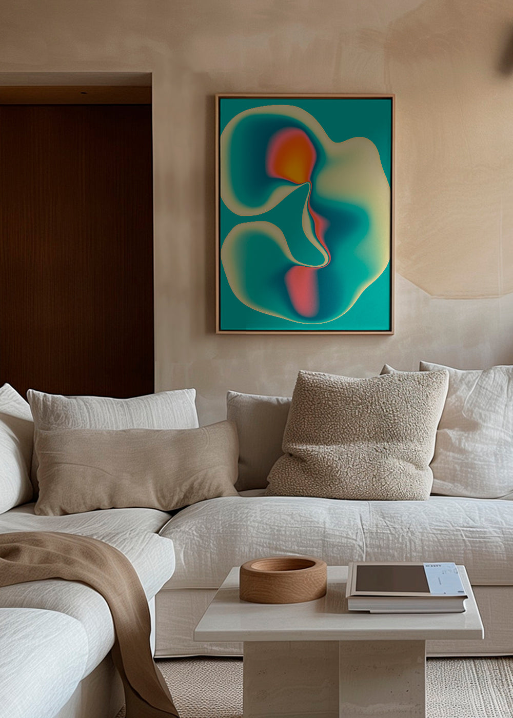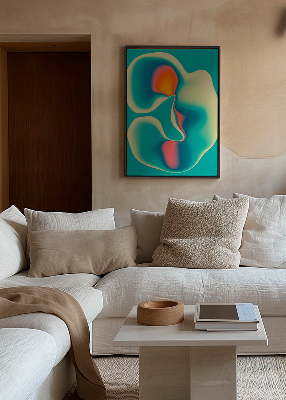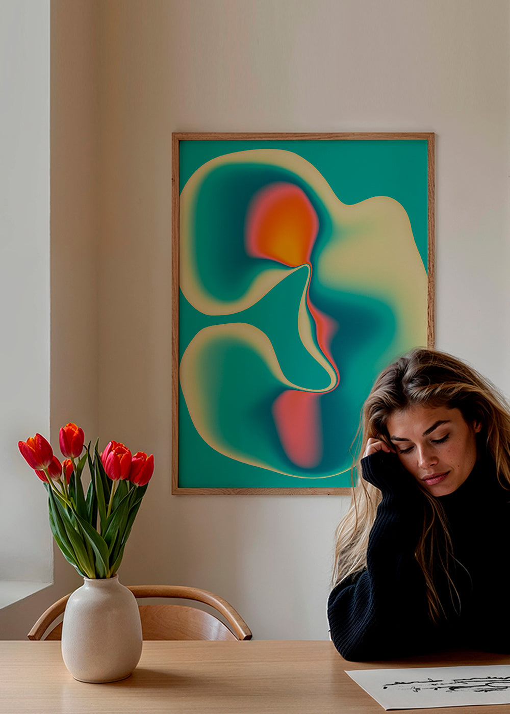 Un póster con inspiración en nuestra colección de cuadros abstractos, de la mano de 1x, con matices de colores azules, y para colgar en posición vertical. Los cuadros abstractos modernizan cualquier espacio y dan un look súper chic a la decoración. No hay paredes feas o bonitas, hay paredes vacías o paredes llenas.