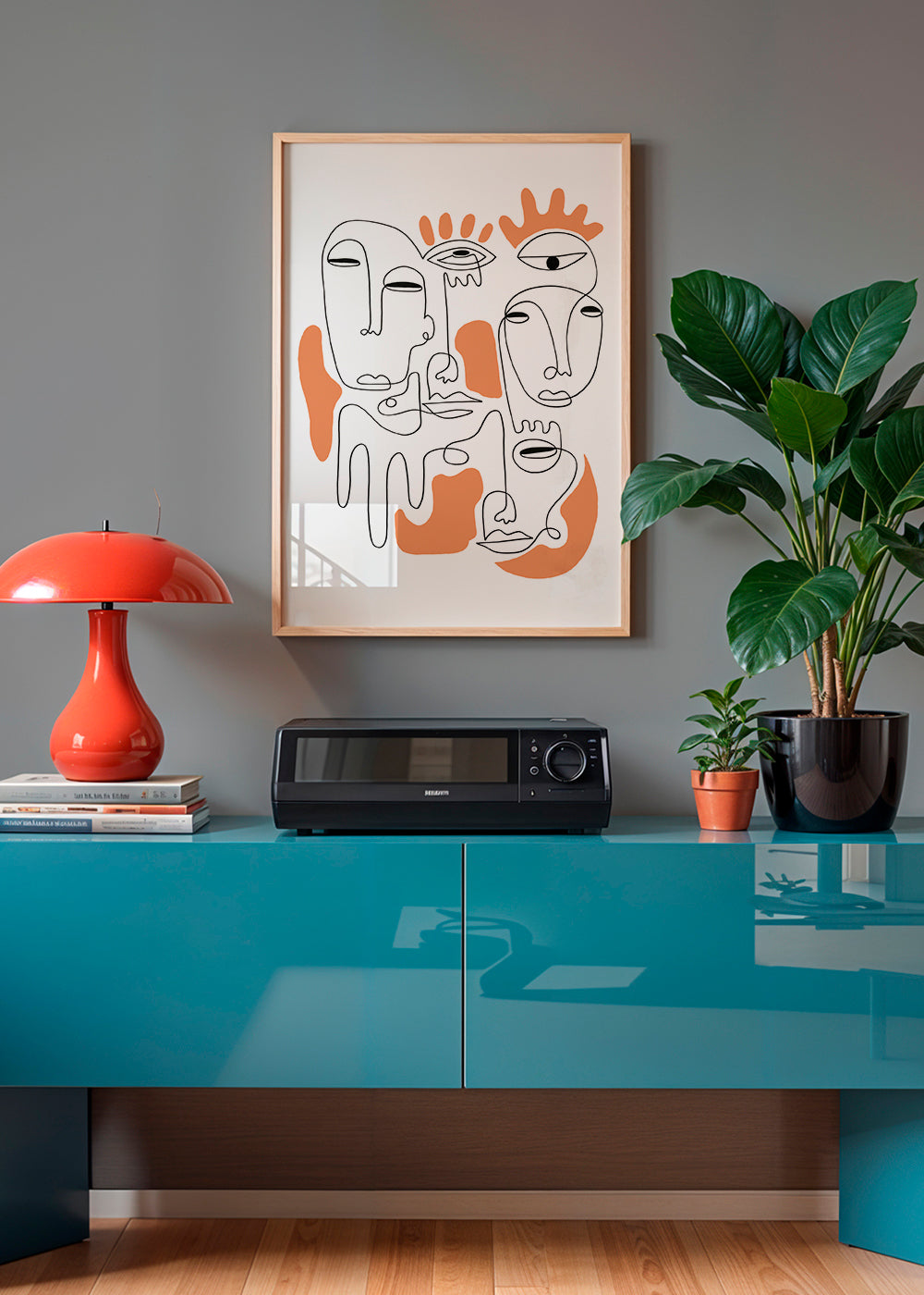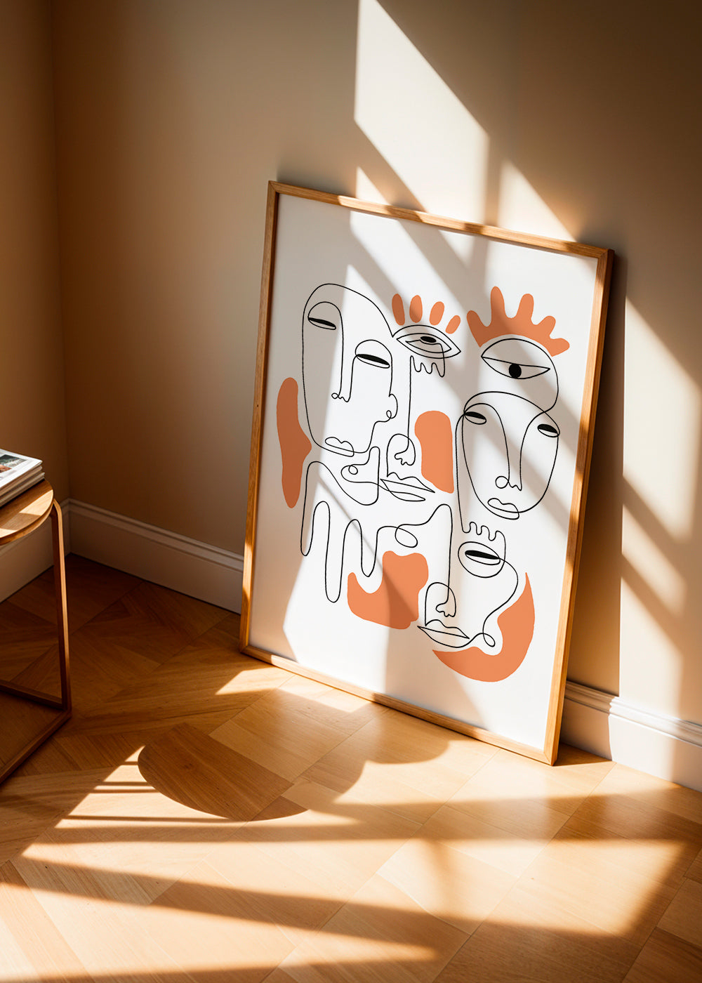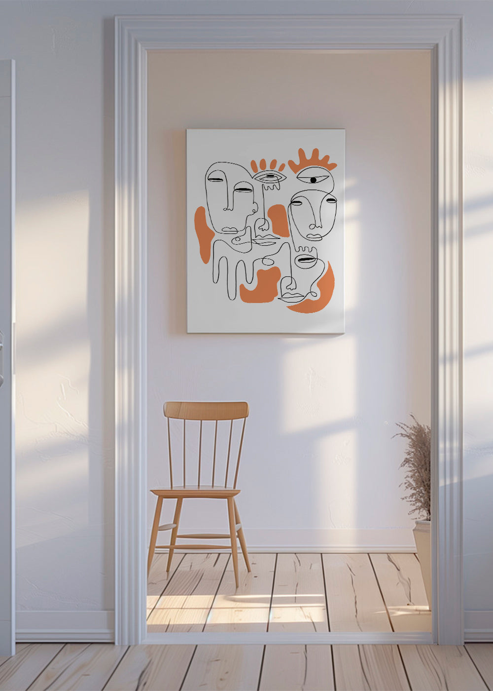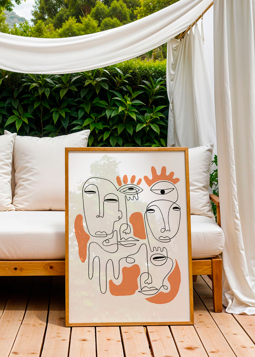 Una lámina perteneciente a la categoría de cuadros de caras, creada por Shatha Dafai, de matices naranjas, y para colgar en posición vertical. Se trata de una obra abstracta ideal para prácticamente cualquier espacio del hogar. Dale un toque artístico a tu decoración.