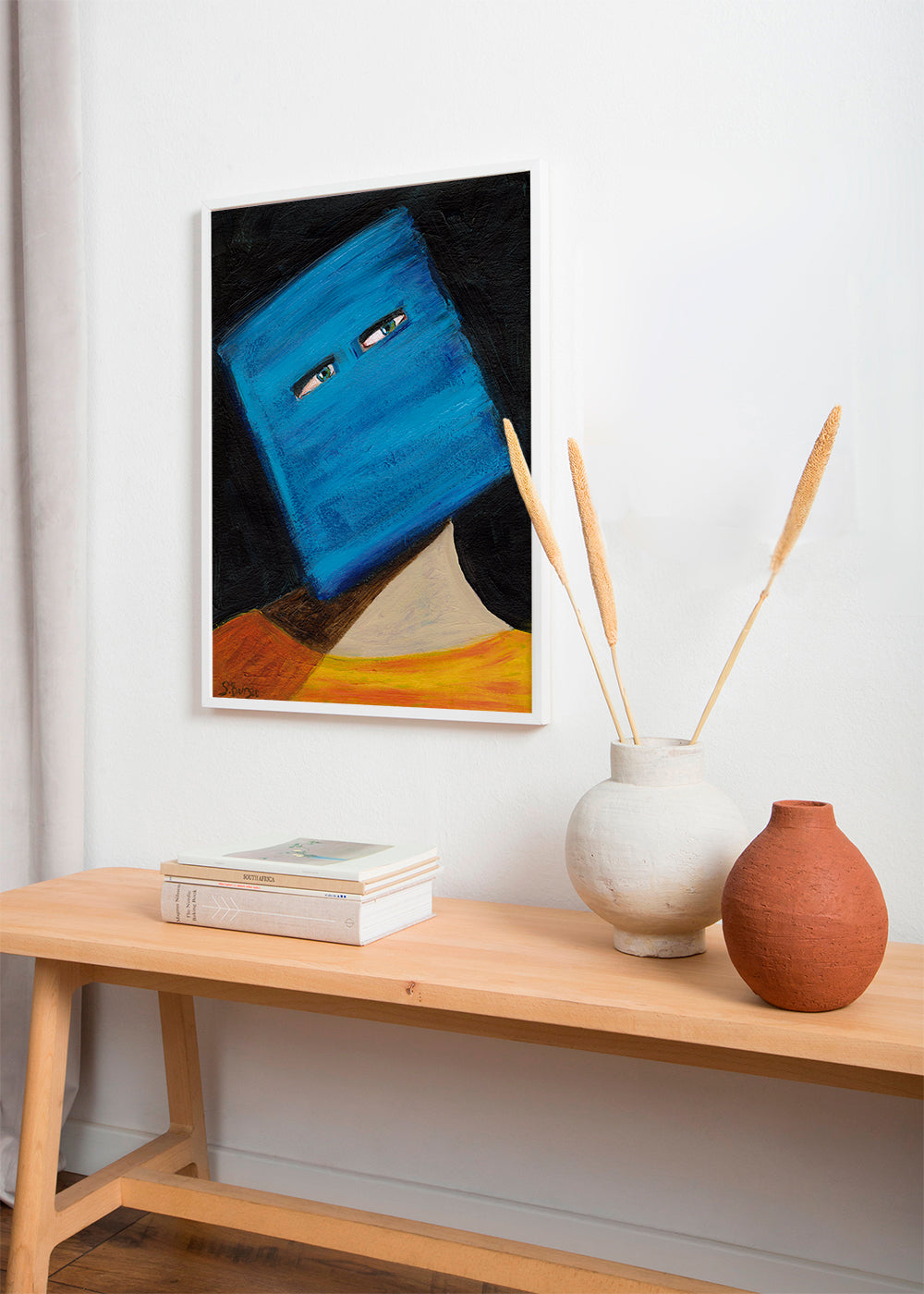 Un póster de la colección cuadros y láminas con ilustraciones, hecha por 1x, con tonalidades de colores azules, y de disposición vertical. Los cuadros con ilustraciones son ideales para combinar con arte minimalista y abstracto. Deja que tus paredes cuenten historias.