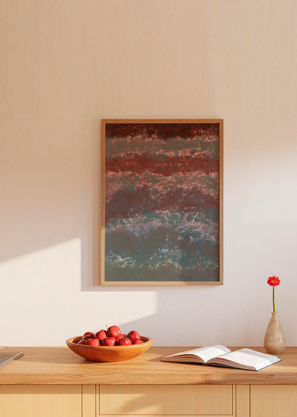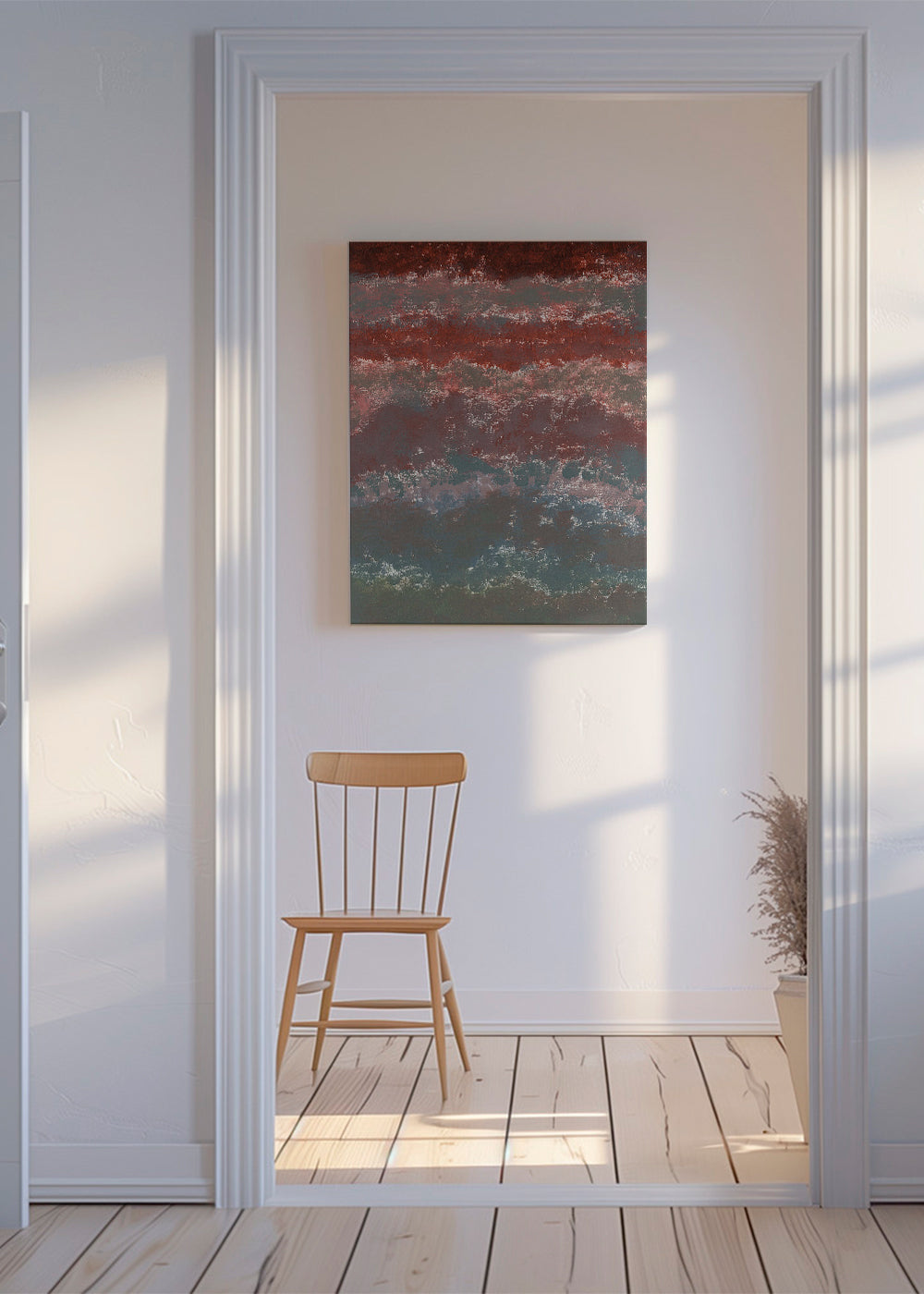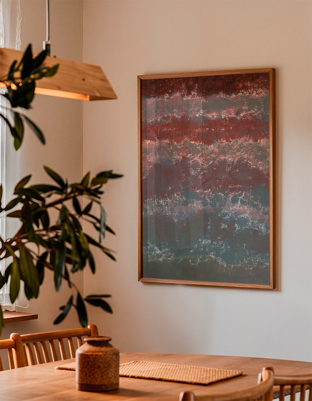 Un póster de nuestra colección de cuadros abstractos, que nos presenta Elena Camacho Art, con tonos rojos, y de formato vertical. El arte abstracto despierta nuestras mentes y nos hace reflexionar sobre el significado de las obras. Una pared con cuadros puede cambiar todo el look de una estancia.