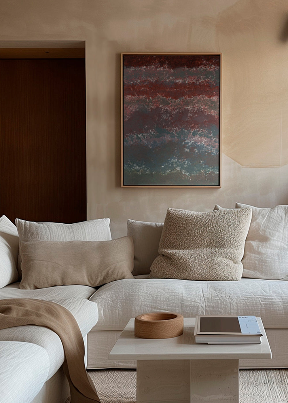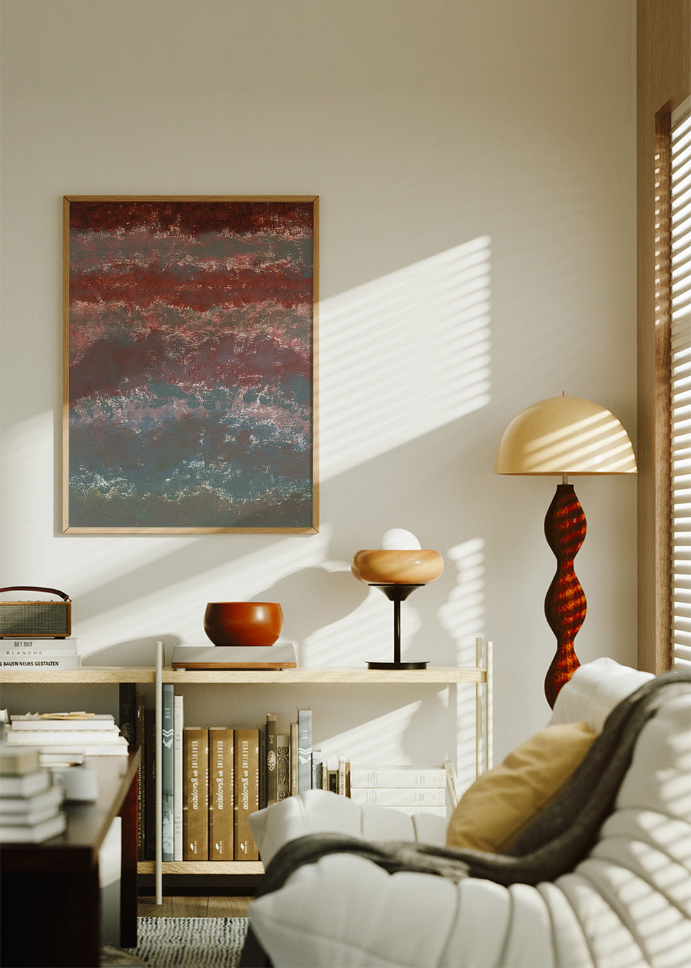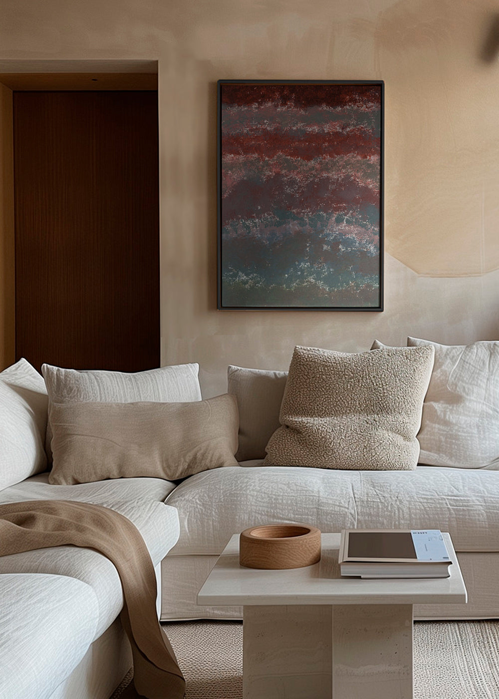 Un póster de nuestra colección de cuadros abstractos, que nos presenta Elena Camacho Art, con tonos rojos, y de formato vertical. El arte abstracto despierta nuestras mentes y nos hace reflexionar sobre el significado de las obras. Una pared con cuadros puede cambiar todo el look de una estancia.