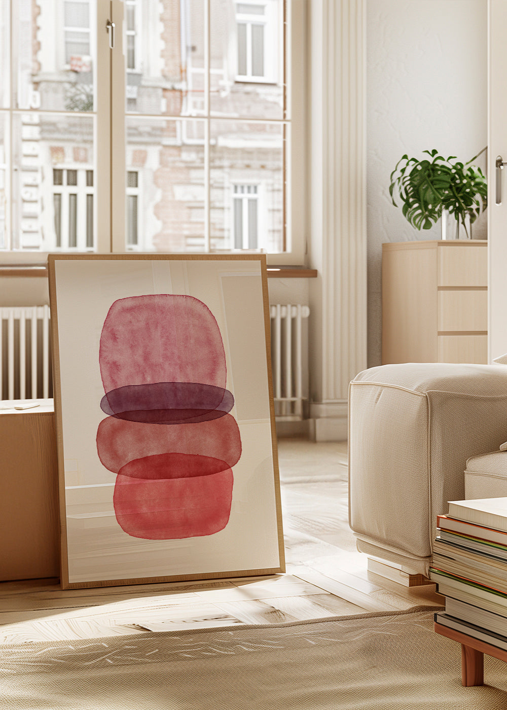 Esta lámina perteneciente a la categoría de cuadros geométricos, original de Nouveau Prints, en tonos rojos, y de posición vertical. El arte geométrico es un estilo elegante para decorar las paredes del hogar. No hay paredes feas o bonitas, hay paredes vacías o paredes llenas.