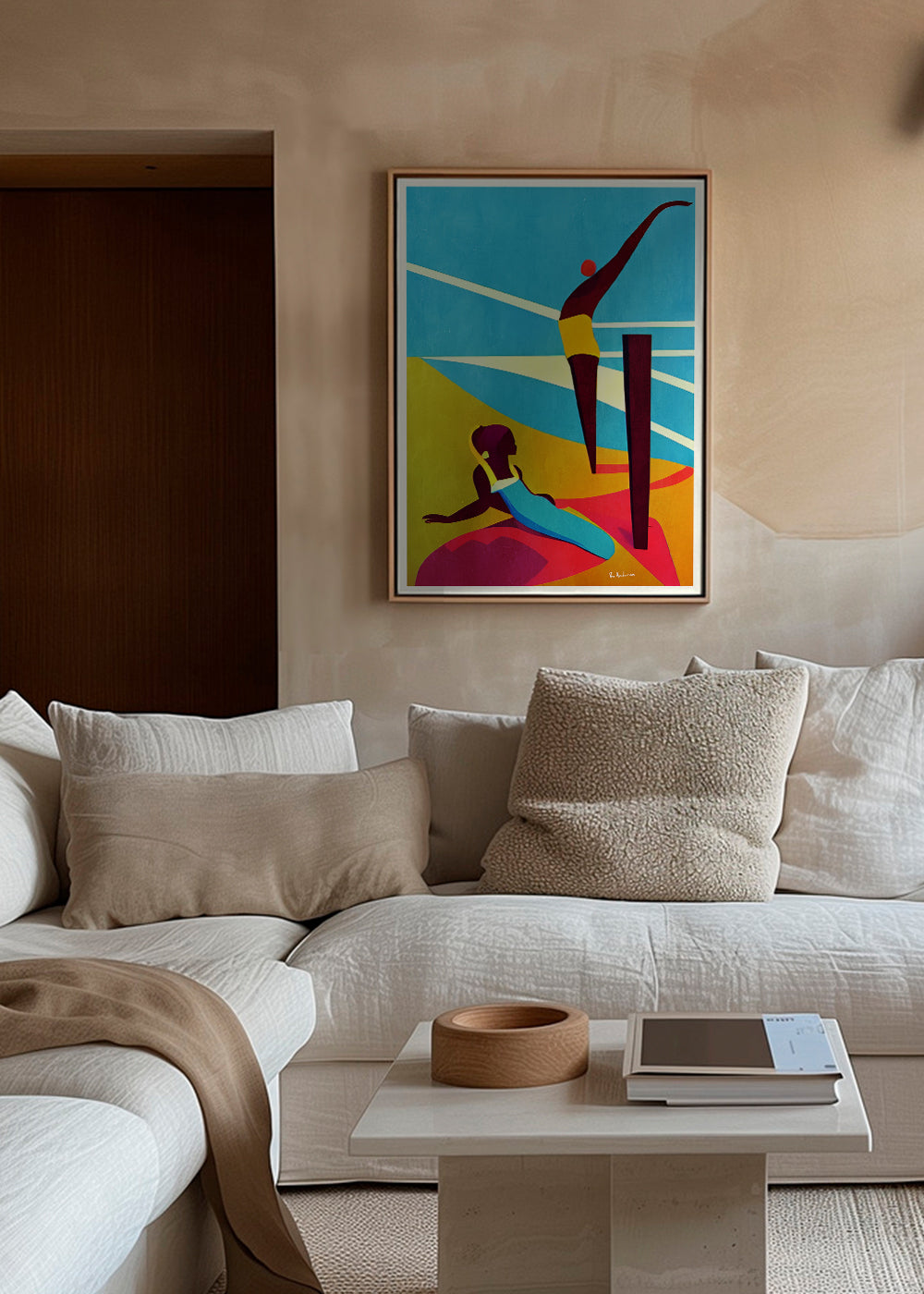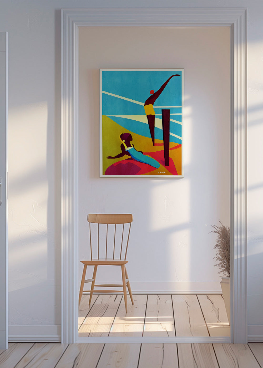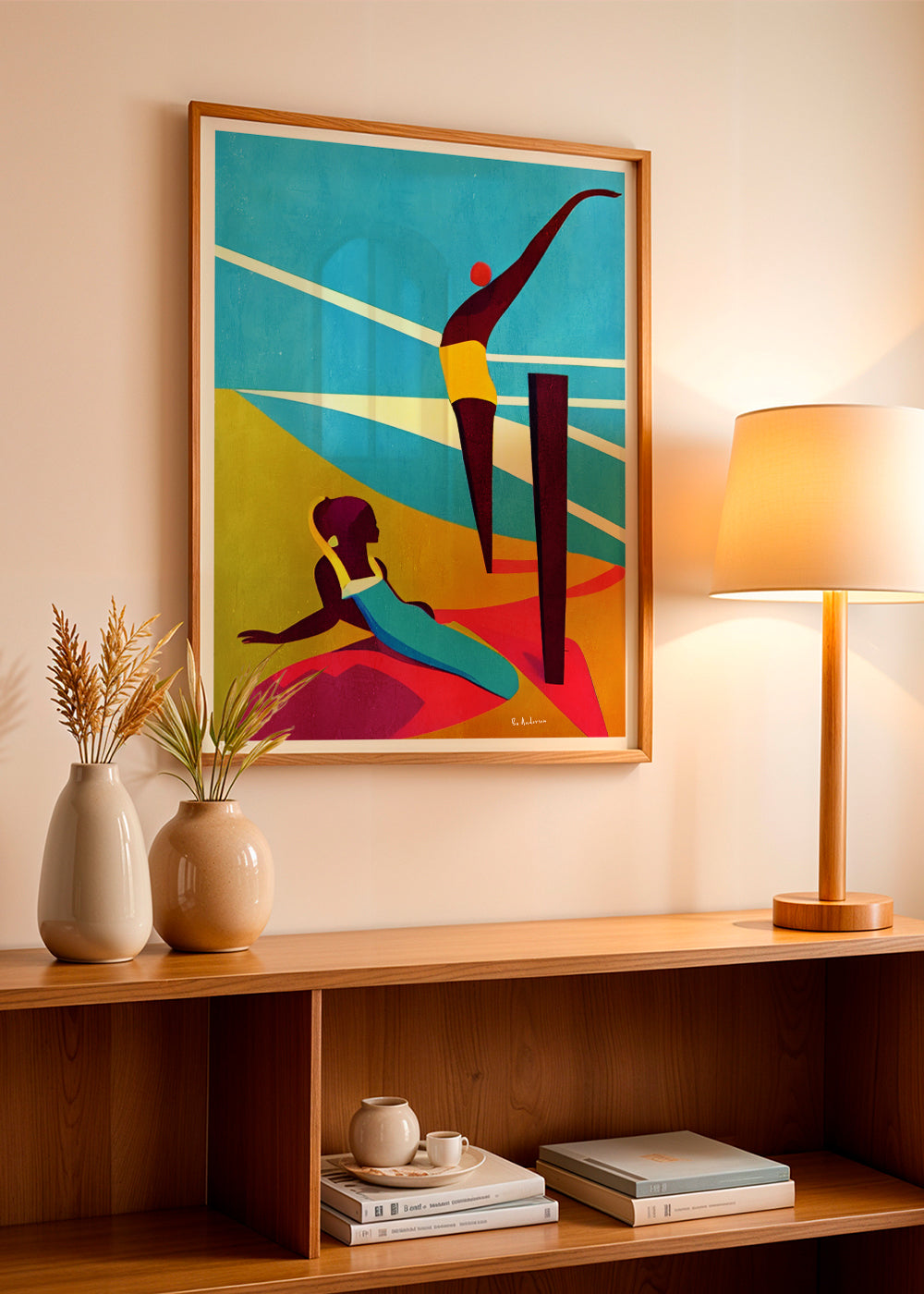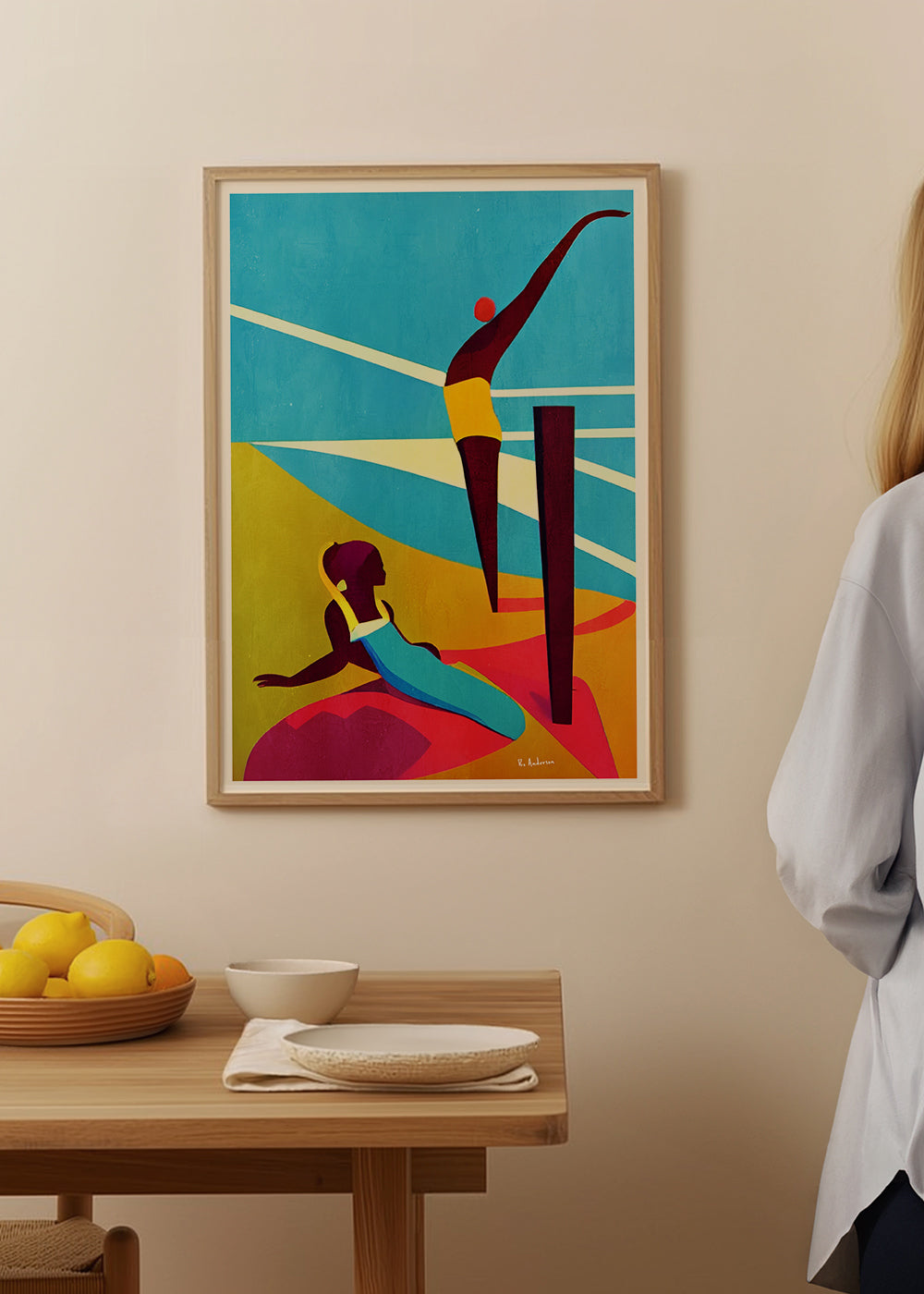 Una lámina con inspiración en nuestra colección de cuadros de mujeres, original de Bo Anderson, con toques multicolor, y ideal para poner en posición vertical. Los cuadros con ilustraciones dan un toque original a la decoración del hogar. Añade un poco de arte a la decoración de tu hogar.