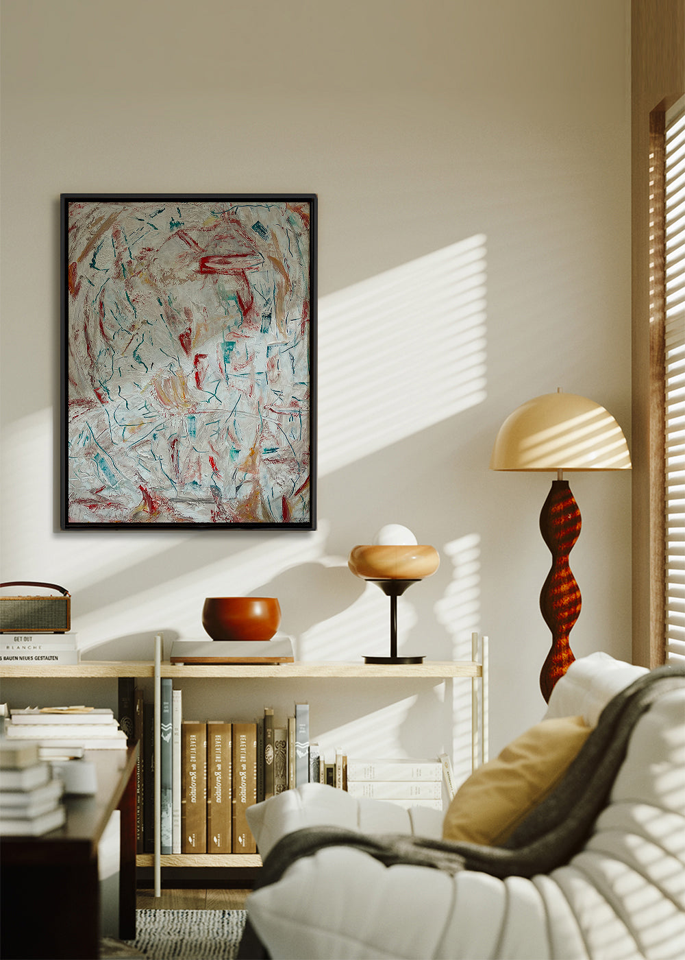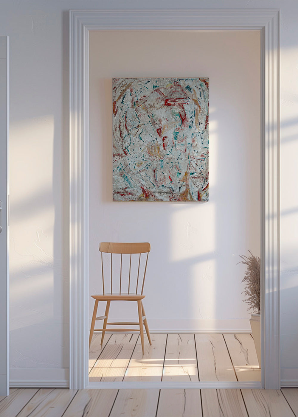 Bonita obra de nuestra categoría de cuadros abstractos, creada por Elena Camacho Art, con tonalidades de colores multicolor, y de posición vertical. Los lienzos y láminas de arte abstracto potencian la singularidad de los espacios. Paredes elegantes para hogares chic.