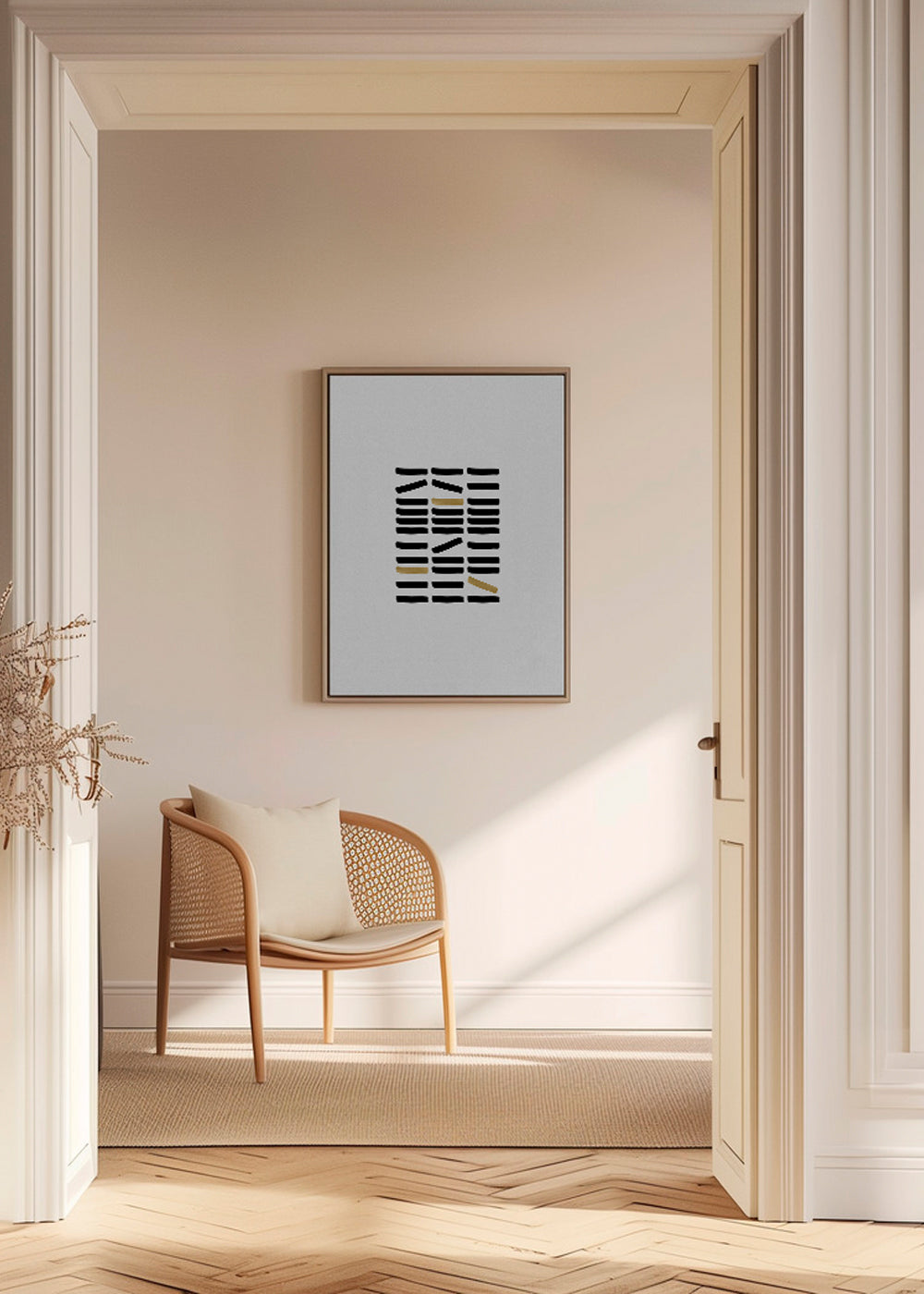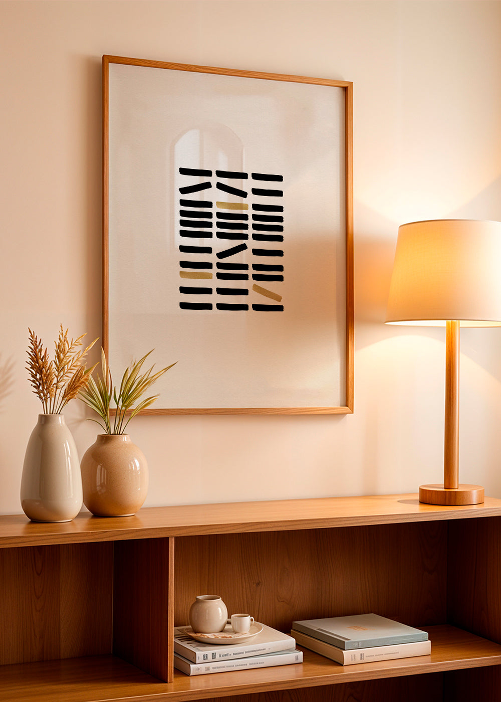 Este póster del estilo de nuestros cuadros de estampados, original de Orara Studio, con toques dorados, y para colgar en posición vertical. El arte geométrico es un estilo elegante para decorar las paredes del hogar. Deja tus paredes a cuadros.