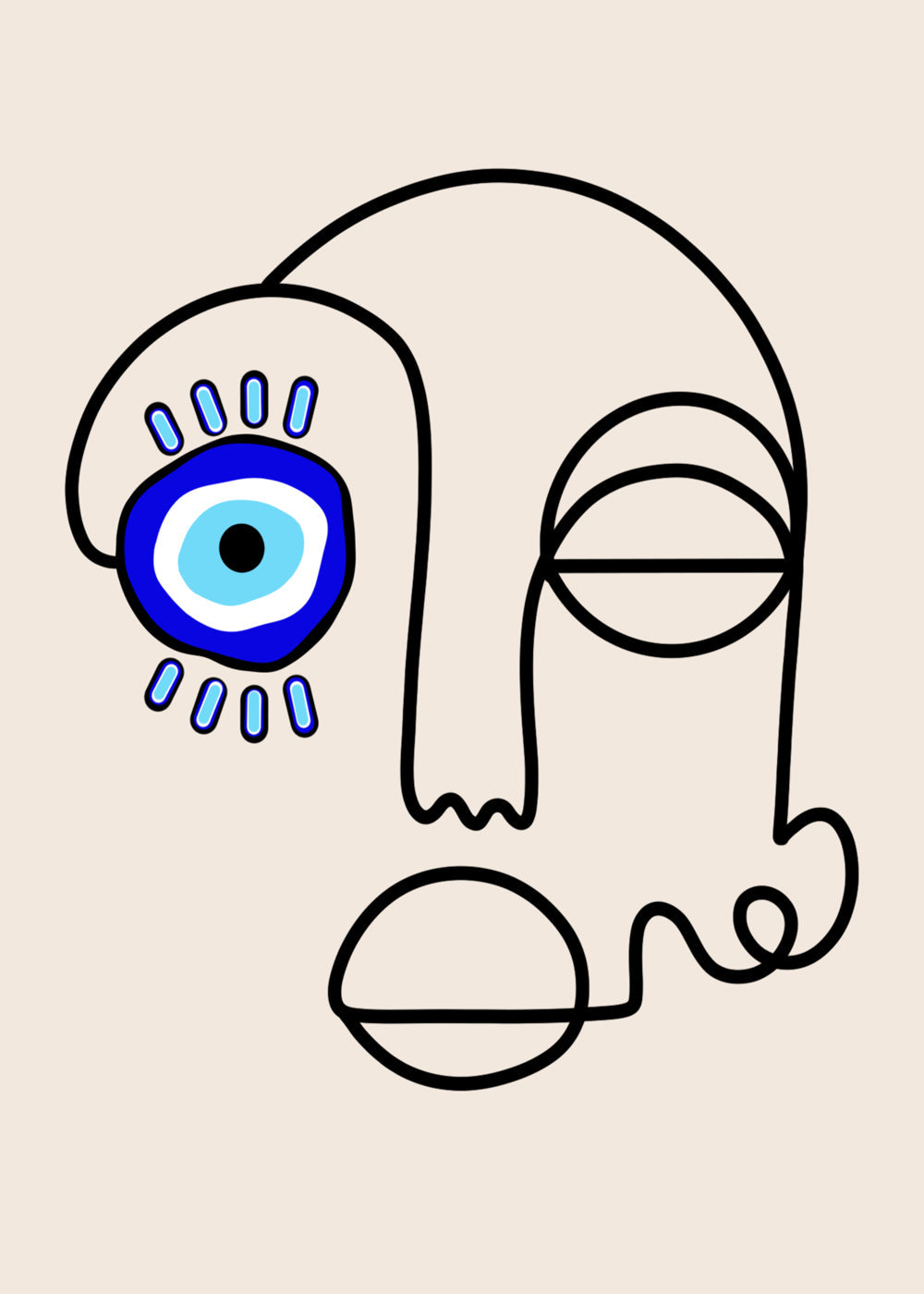 Bonito diseño de la serie de cuadros de caras, que nos presenta Shatha Dafai, en tonos azules, y orientada en vertical. Se trata de una obra de arte abstracto que dará un toque moderno al diseño de tus espacios. Consigue una decoración con mucho arte.