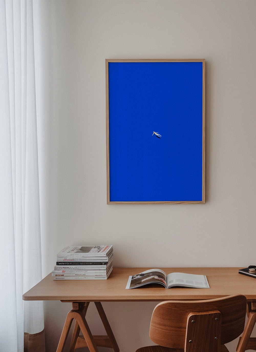Bonita pieza de la colección posters y láminas retro y vintage, original de Maarten Léon, con colores azules, y de posición vertical. Una obra de estilo retro ideal para una decoración con toques vintage. El toque definitivo para la decoración de tu casa.