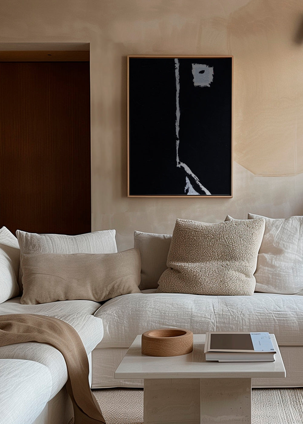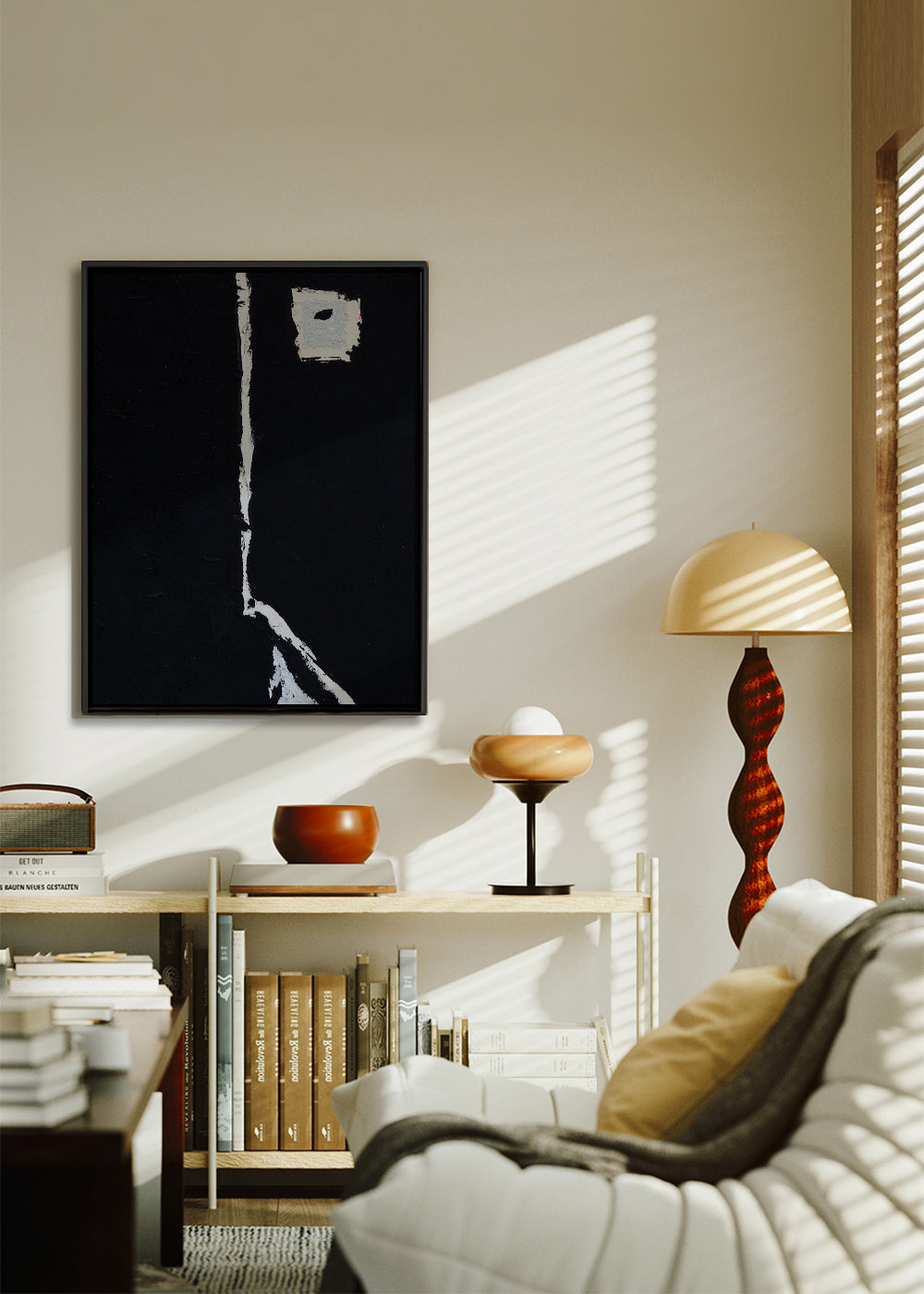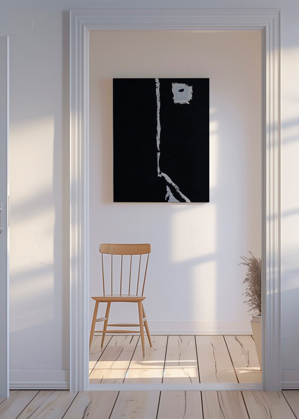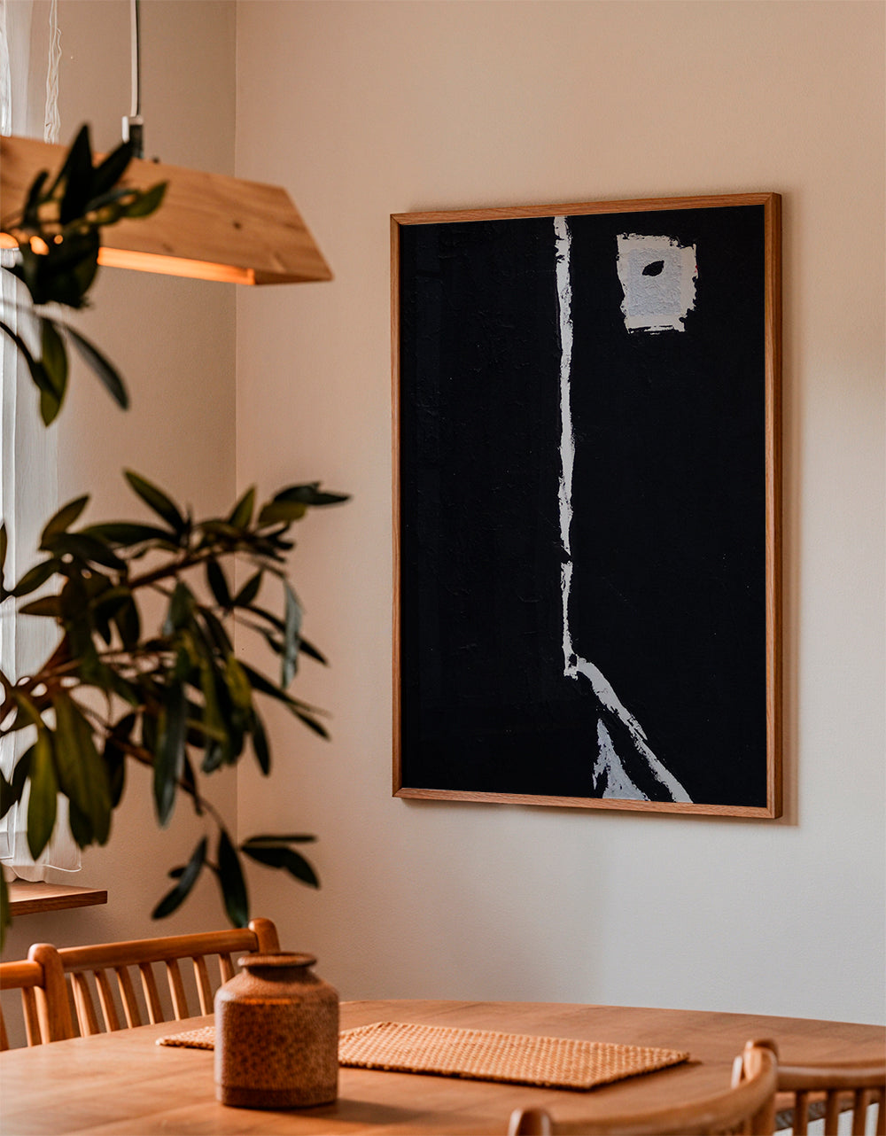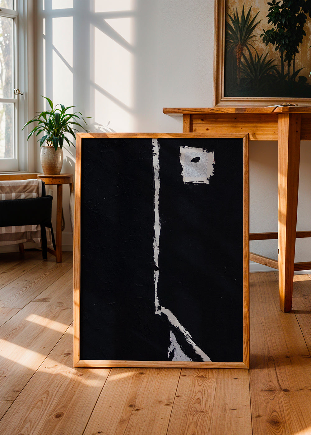 Bonito póster de la serie de cuadros en blanco y negro, de la colección de Elena Camacho Art, en tonos monocromáticos, y con orientación vertical. Se trata de una obra de arte abstracto que dará un toque moderno al diseño de tus espacios. Construye rinconcitos llenos de arte.