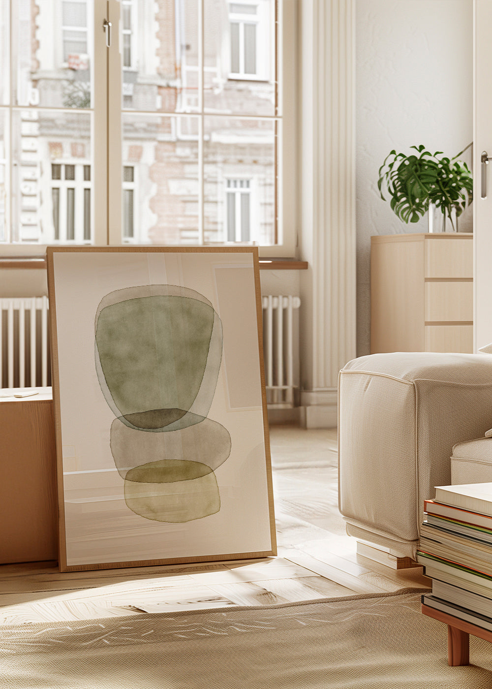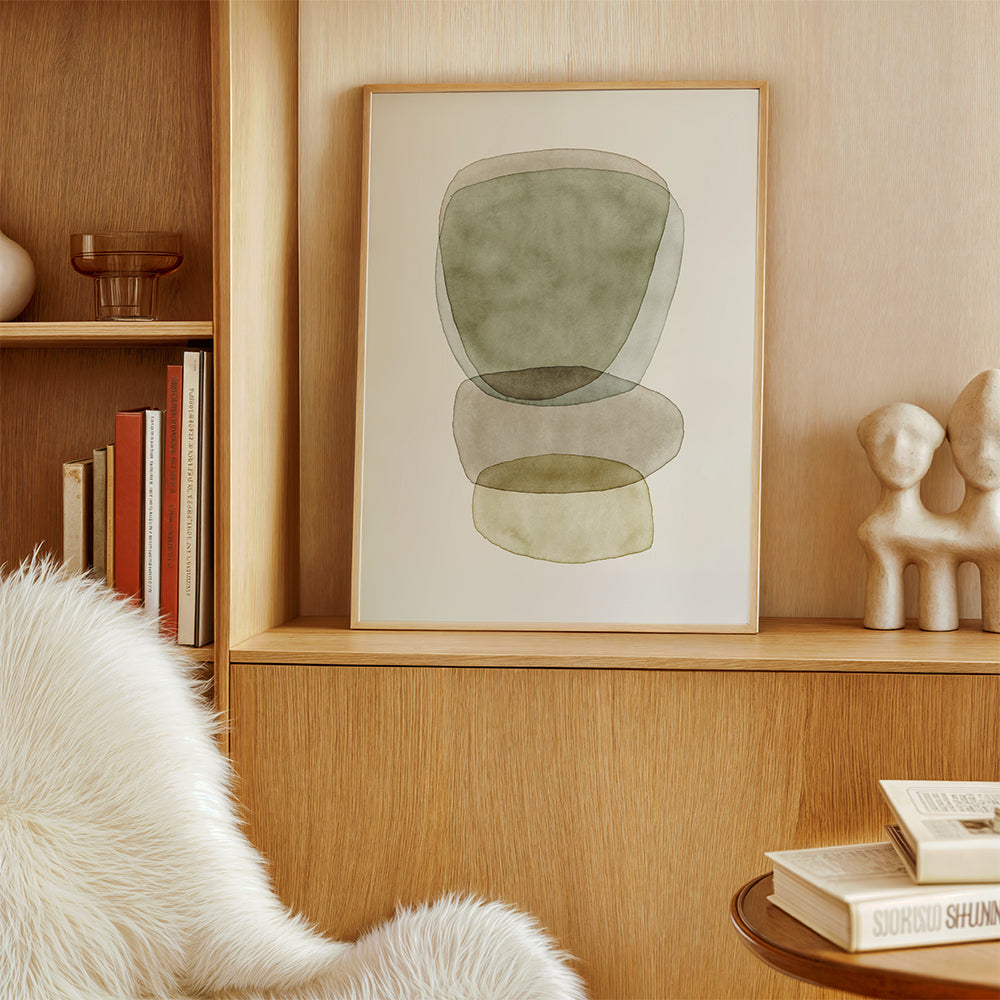 Este póster del estilo de nuestros cuadros geométricos, de la colección de Nouveau Prints, en tonos marrones, y para colgar en posición vertical. Esta obra con formas abstractas es ideal para combinar con cuadros geométricos y arte abstracto. No hay paredes feas o bonitas, hay paredes vacías o paredes llenas.