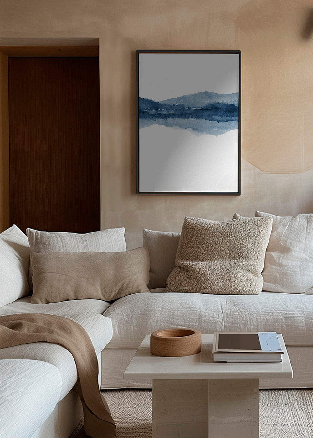 Una lámina de nuestro conjunto de cuadros de paisajes y naturaleza, perteneciente a la colección de Nouveau Prints, con matices de colores azules, y ideal para poner en posición vertical. Los cuadros de paisajes son espectaculares, combínalos con textos y frases para crear composiciones de pared chulísimas. Puro arte y diseño.