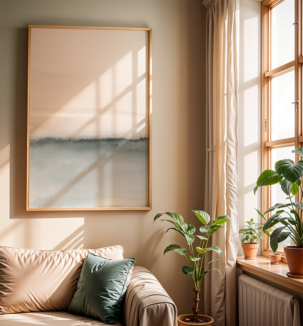 - Enmarcado gratuito: al escoger un marco, recibirás tus cuadros enmarcados y listos para colgar.