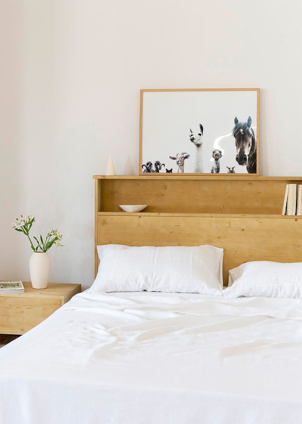 Todos nuestros marcos son fabricados en España. Los marcos de color blanco, negro y roble están hechos de madera de Ayous, y los de roble están chapados en roble, mientras que los metálicos, están fabricados en aluminio.