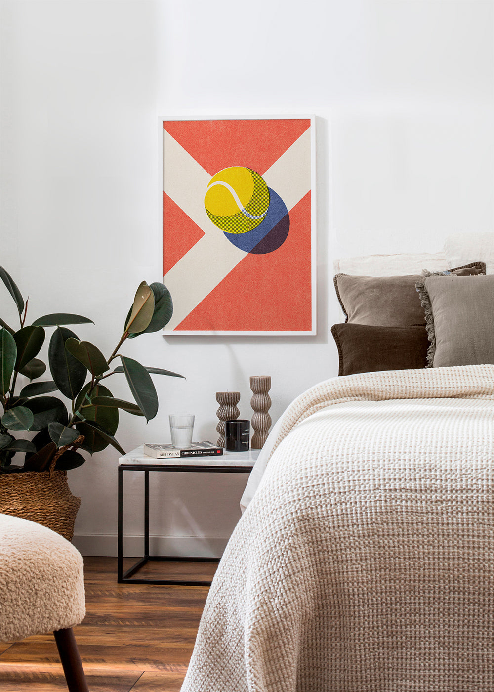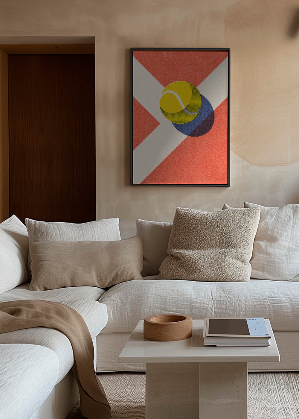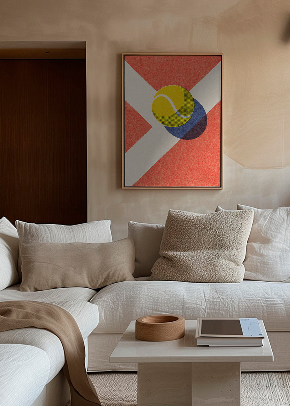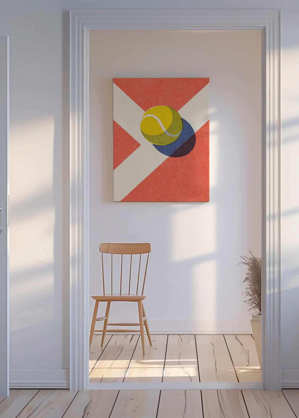 Una obra del estilo de nuestros cuadros de tennis, de la mano de Daniel Coulmann, en tonalidades de colores rojos, y en formato vertical. Una obra ideal para los amantes del deporte. Saca tu lado más deportista decorando con nuestros cuadros de deporte. Deja que tus paredes cuenten historias.