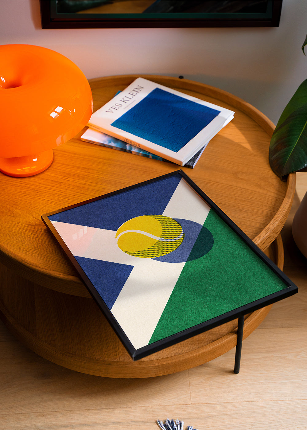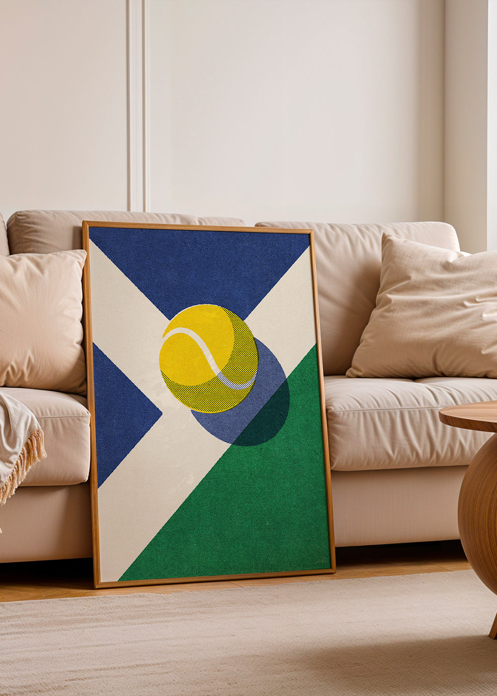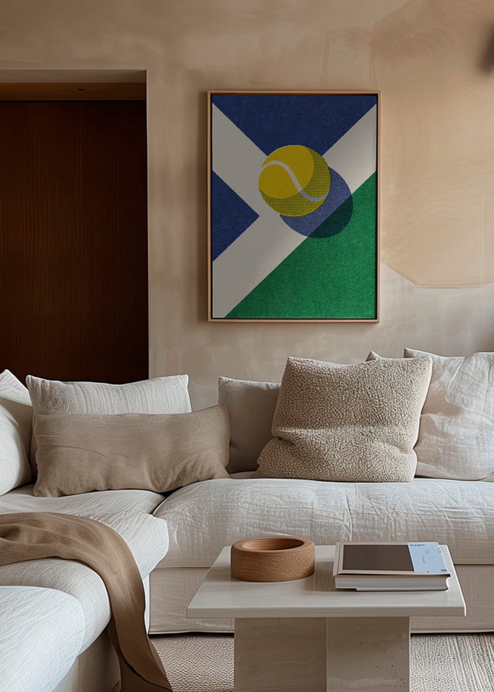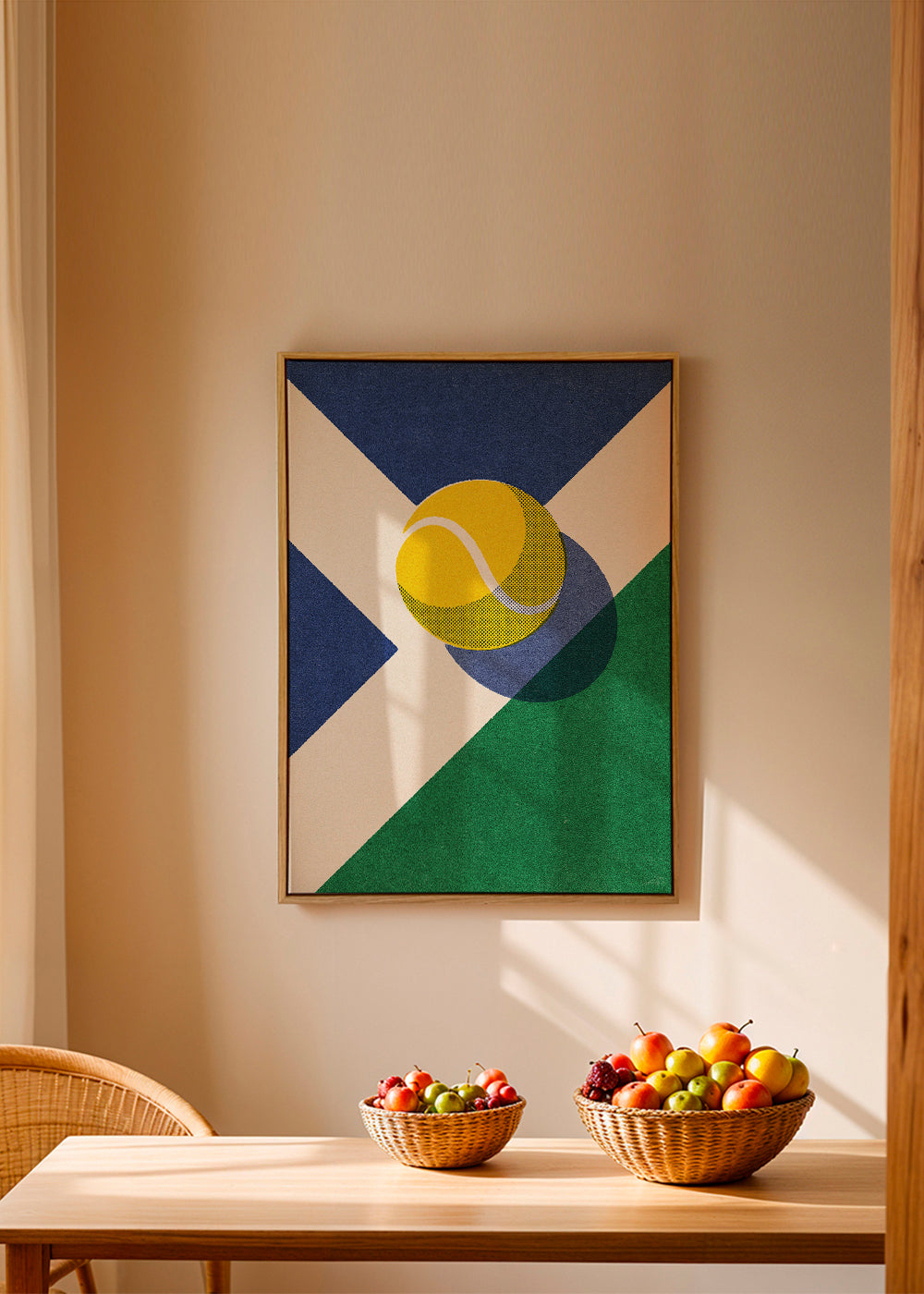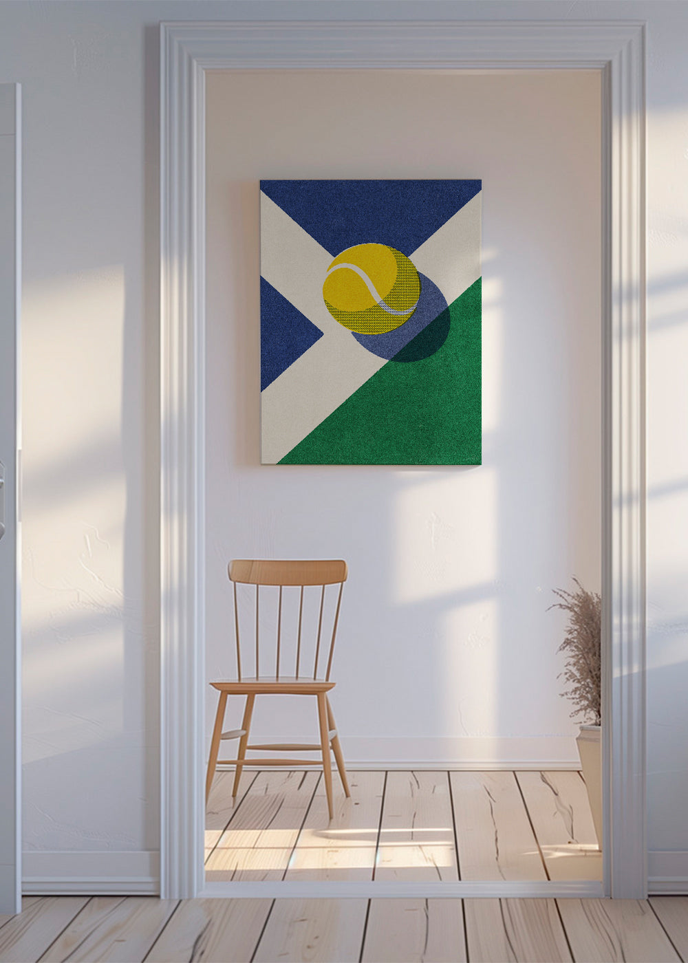 Un diseño de nuestro conjunto de cuadros de tennis, de la mano de Daniel Coulmann, con colores azules, y en formato vertical. Una obra ideal para los amantes del deporte. Saca tu lado más deportista decorando con nuestros cuadros de deporte. El cuadro que esa pared está esperando.