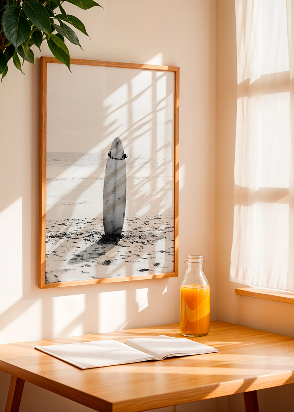 Un póster de nuestro conjunto de cuadros de surf, de Ana Ospina, con tonalidades de colores monocromáticos, y para colocar en posición vertical. Las fotografías artísticas dan expresividad a la decoración del hogar. Cambia el look de tus estancias añadiendo arte.