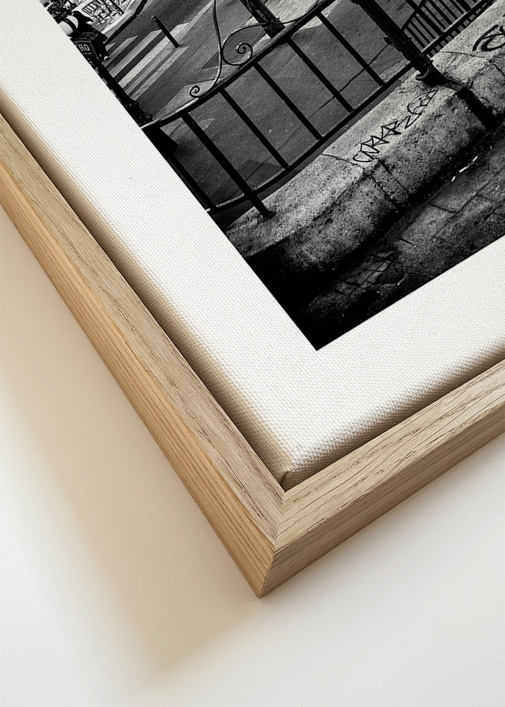 Si seleccionas la opción passepartout, añadiremos el recuadro de cartón blanco al marco, y reduciremos el diseño de la obra. Por ejemplo, si seleccionas una lámina de tamaño 50x70, con marco de color roble y passepartout, reduciremos el diseño de la lámina al tamaño anterior (40x50cm). De esta manera, se adaptará perfectamente a la ventana interior del passepartout.