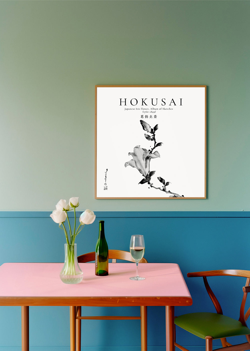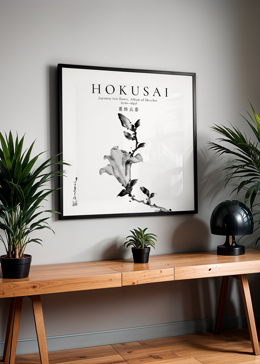 Cuadro en blanco y negro Japanese Iris flower by Katsushika Hokusai - Square