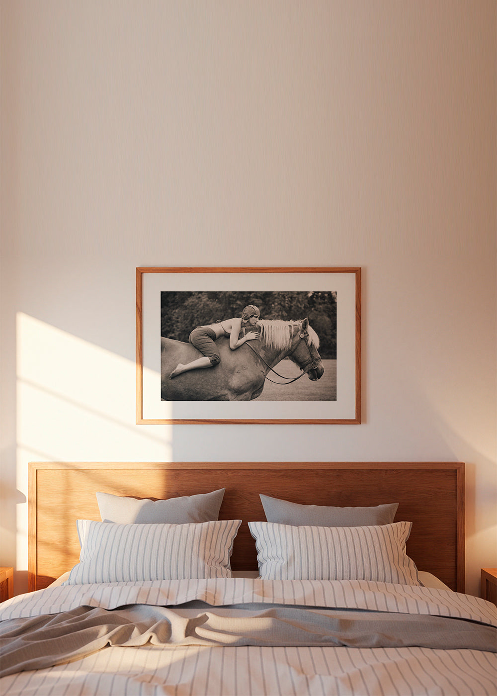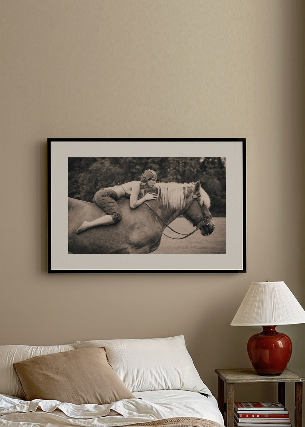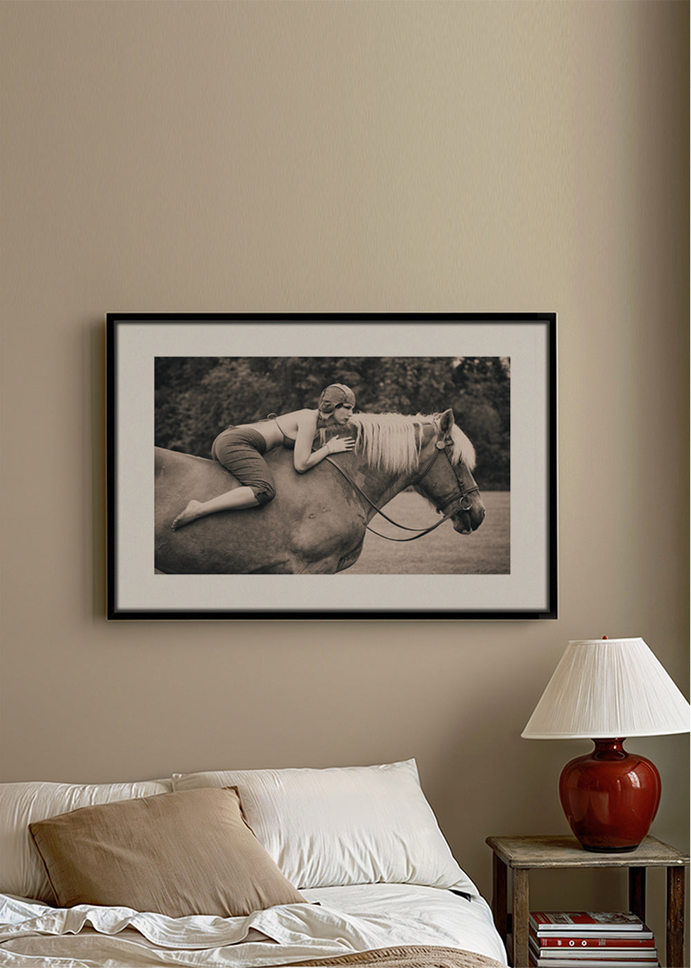 Bonito póster con inspiración en nuestra colección de cuadros de caballos, con tonos monocromáticos, y de formato horizontal. Un póster retro que puedes combinar con otros posters de estilo vintage para dar un toque original al hogar. El toque final que estabas buscando. Esta obra incluye un margen blanco que enmarca el diseño para potenciar su estilo.