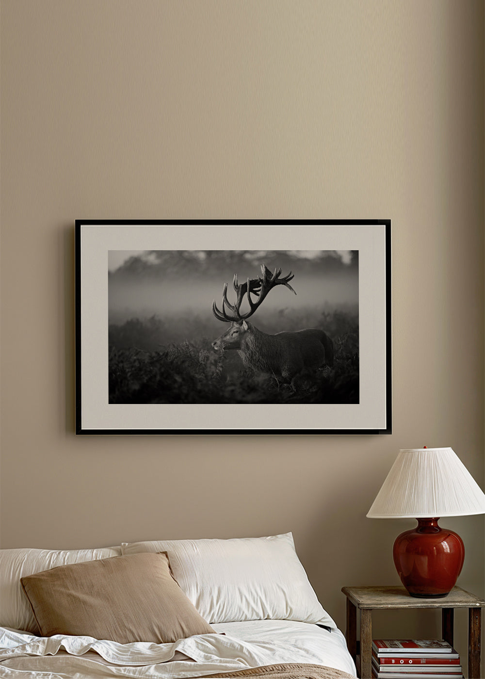 Una lámina de la serie de cuadros de animales, en tonos monocromáticos, y de disposición horizontal. Las láminas de animales nos permiten mostrar nuestro lado más salvaje en la decoración de las paredes. Olvídate de las paredes aburridas y sosas. El margen blanco que envuelve a la imagen potencia la expresividad de la obra.