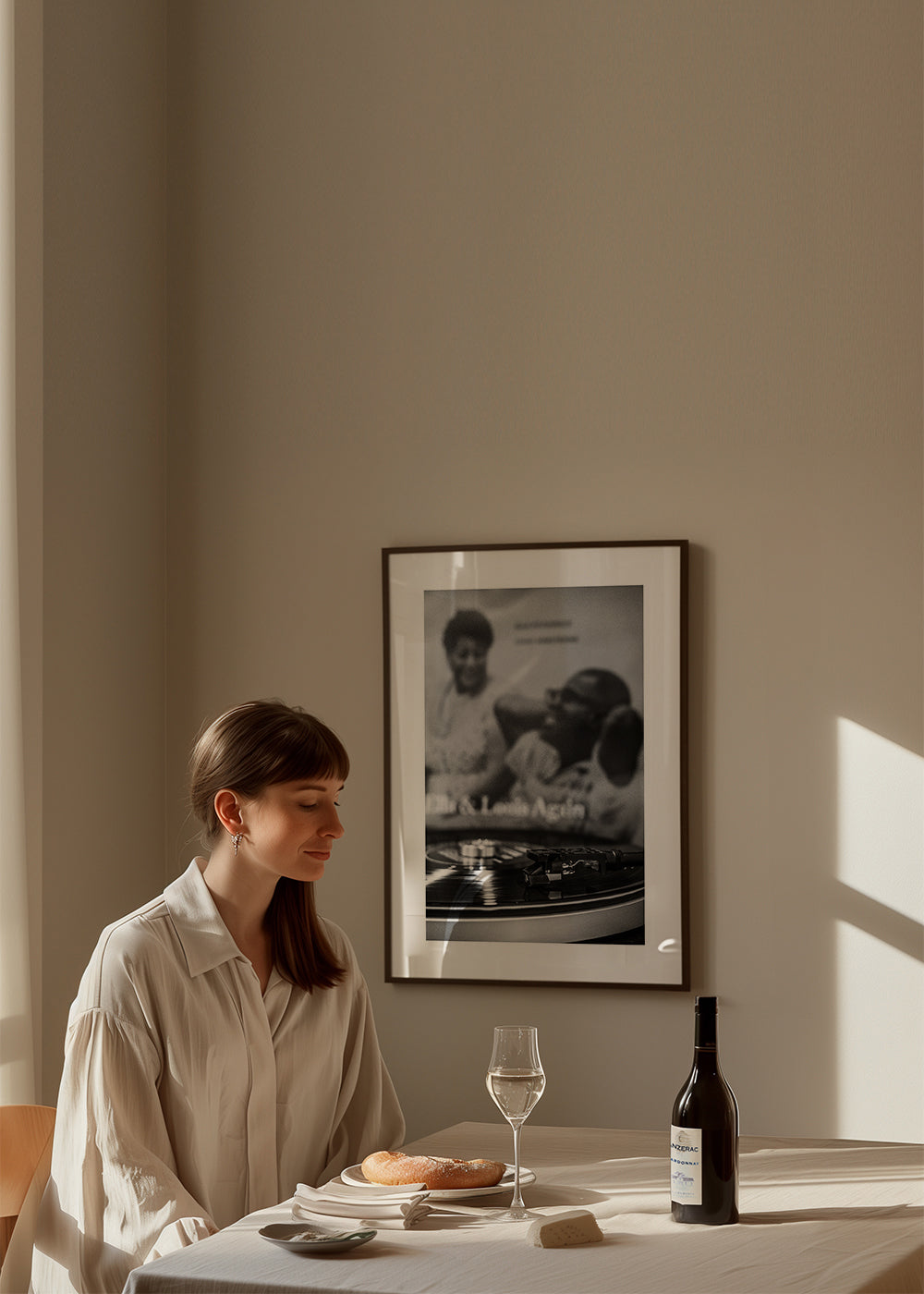 Un cuadro de nuestro repertorio de posters y láminas retro y vintage, con tonos monocromáticos, y orientada en vertical. Una obra de estilo retro ideal para una decoración con toques vintage. Construye tu rincón favorito. El margen blanco que envuelve a la imagen potencia la expresividad de la obra.