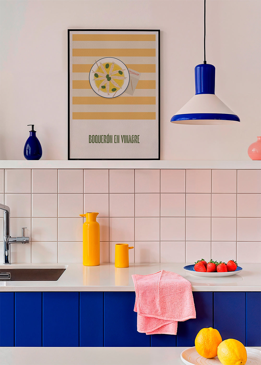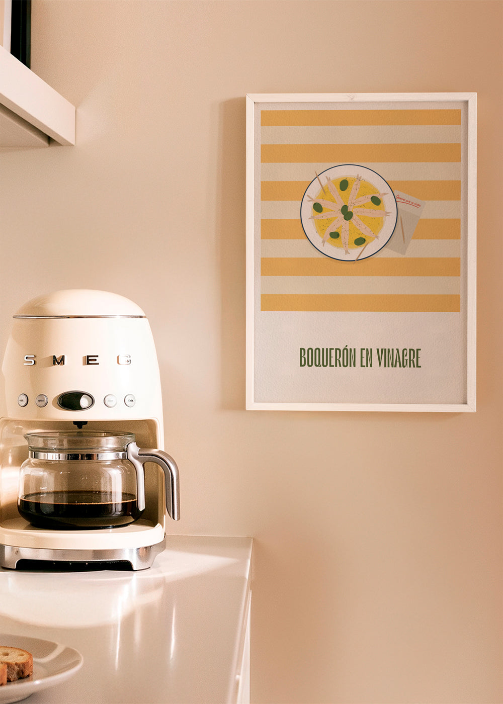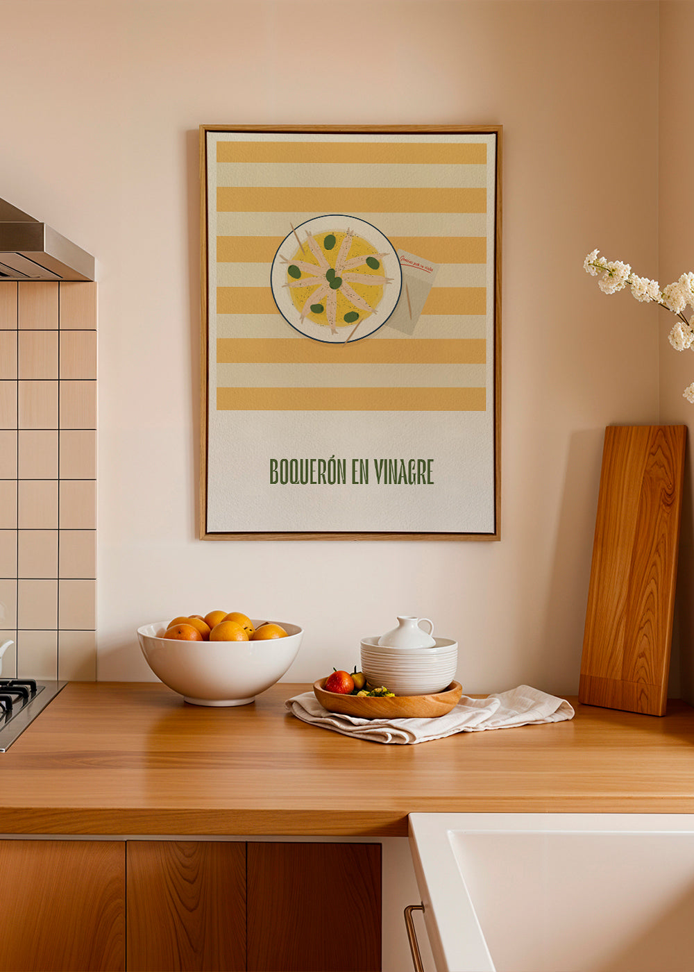Un cuadro de nuestro repertorio de cuadros de comida y bebida, concebida por Nerea Ramírez, con toques amarillos, y con orientación vertical. Se trata de una obra ideal para decorar la cocina de tu hogar. Selecciona el tamaño que mejor encaje en tu decoración.