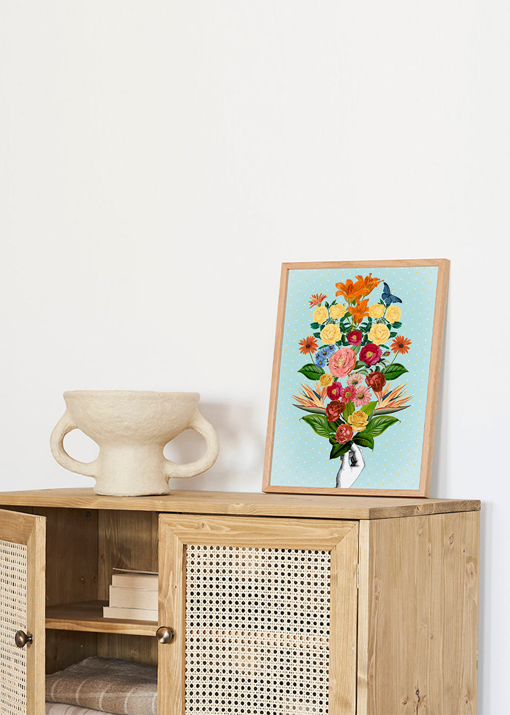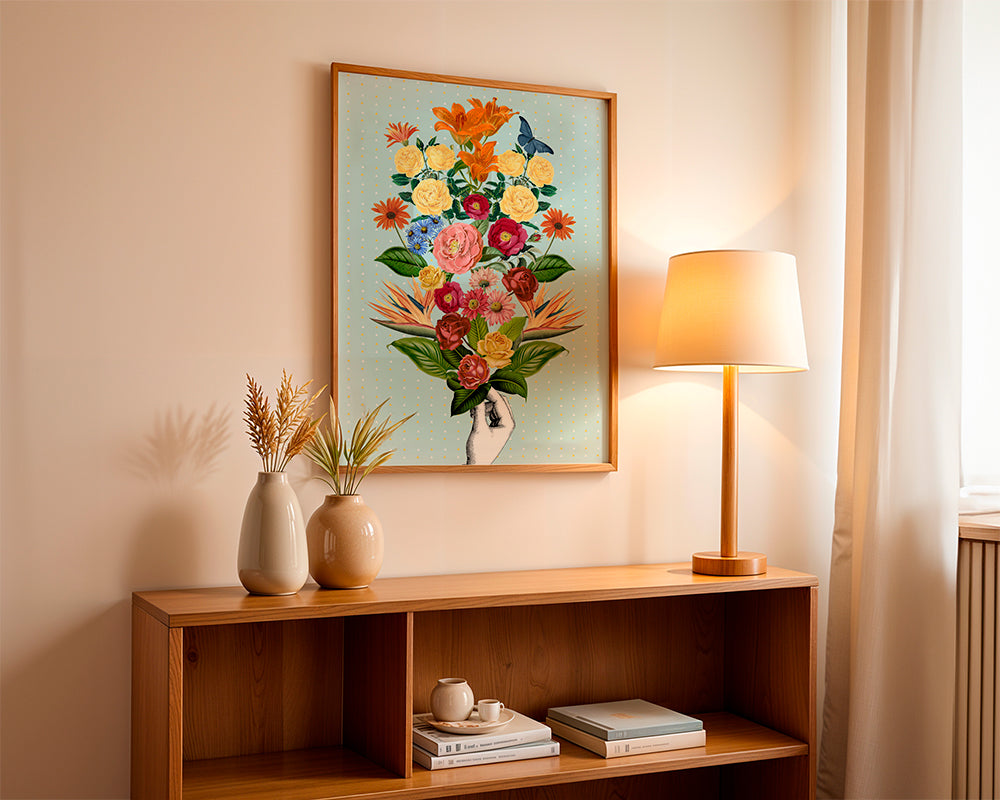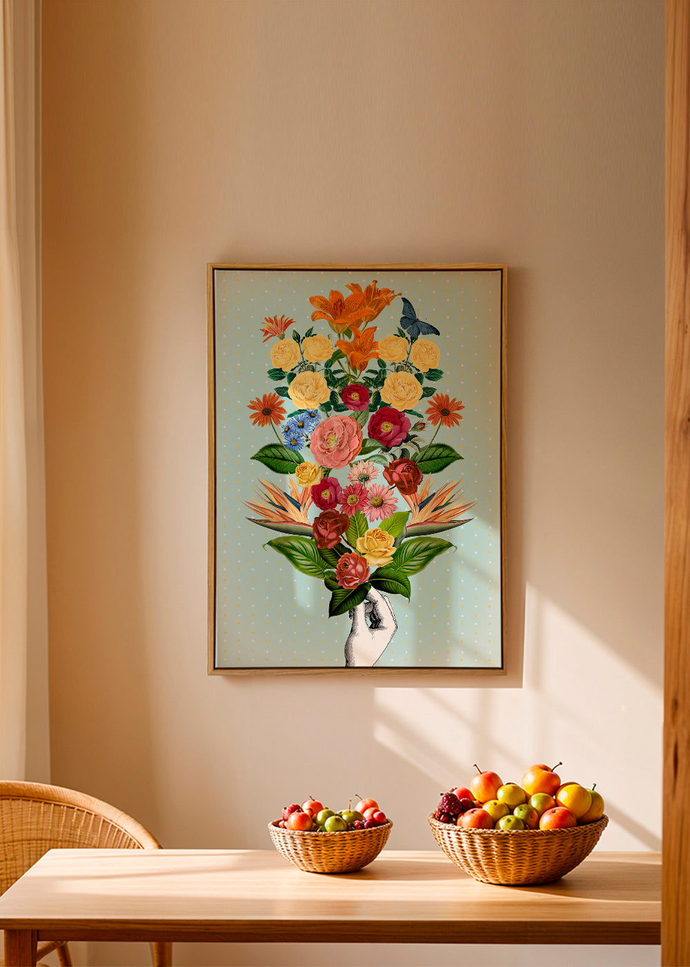 Este póster del estilo de nuestros cuadros de flores y plantas, de Frida Floral Studio, de matices multicolor, y para colgar en posición vertical. Este diseño dará un toque desenfadado a tu hogar, combina muy bien con otros cuadros de flores y plantas y con textos y frases. Este es el cuadro que tu pared estaba buscando.