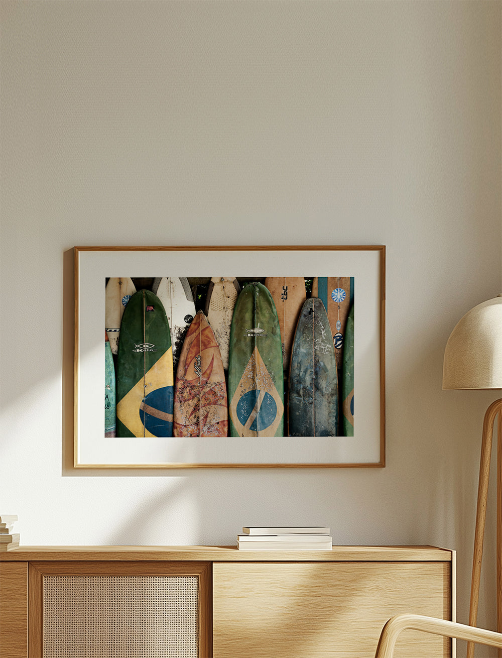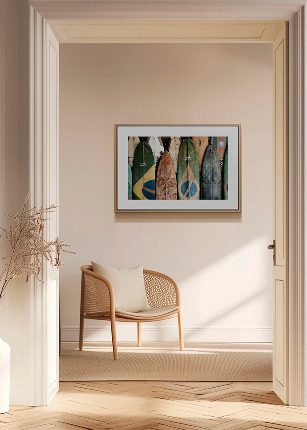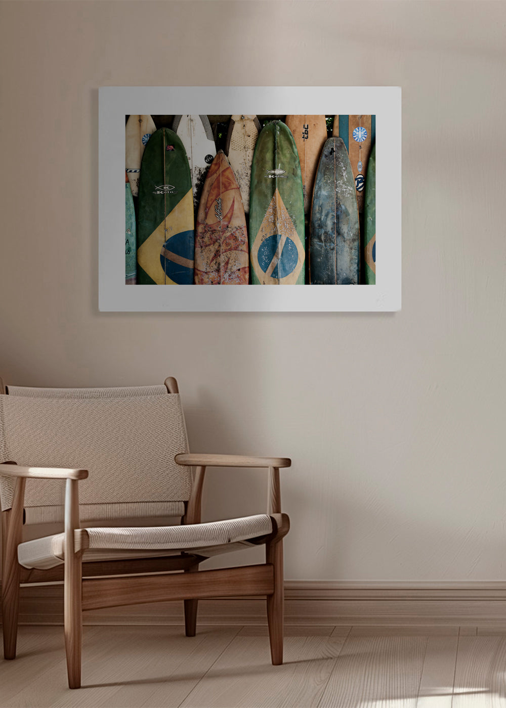 Un diseño de nuestra colección de cuadros de surf, creada por Ferran Feixas, con toques verdes, y de posición horizontal. Los cuadros de paisajes son espectaculares, combínalos con textos y frases para crear composiciones de pared chulísimas. Construye rinconcitos llenos de arte. Esta obra incluye un margen blanco que enmarca el diseño para potenciar su estilo.