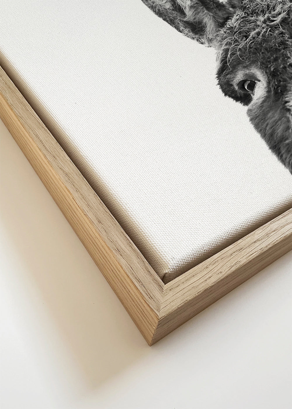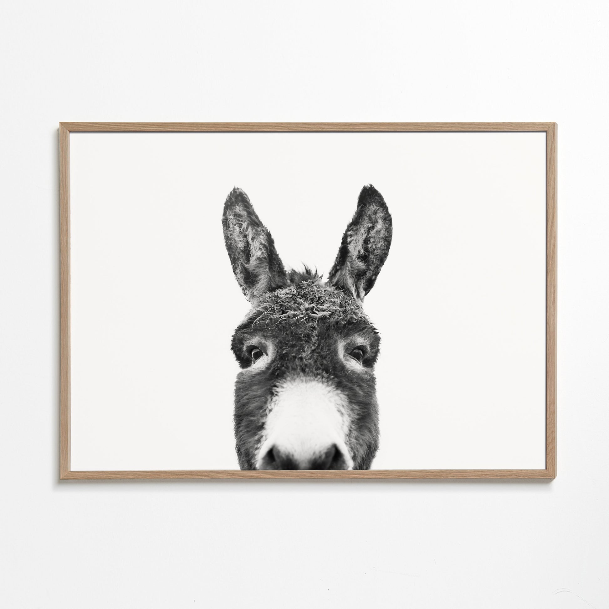 Divertido cuadro infantil de un burro en blanco y negro que quedará perfecto en la decoración de la habitación de los niños.